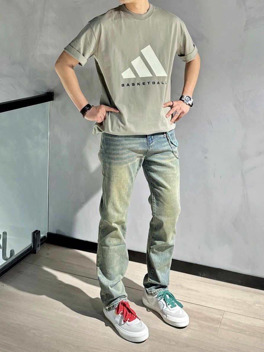 阿迪的这件T恤设计是真的很简约 版型是比较合身的,水泥色上身很显白又高级 搭配今天的这条水洗风牛仔裤👖,真的不要太帅! 夏天这套穿搭就很OK啦! 图源网络侵删