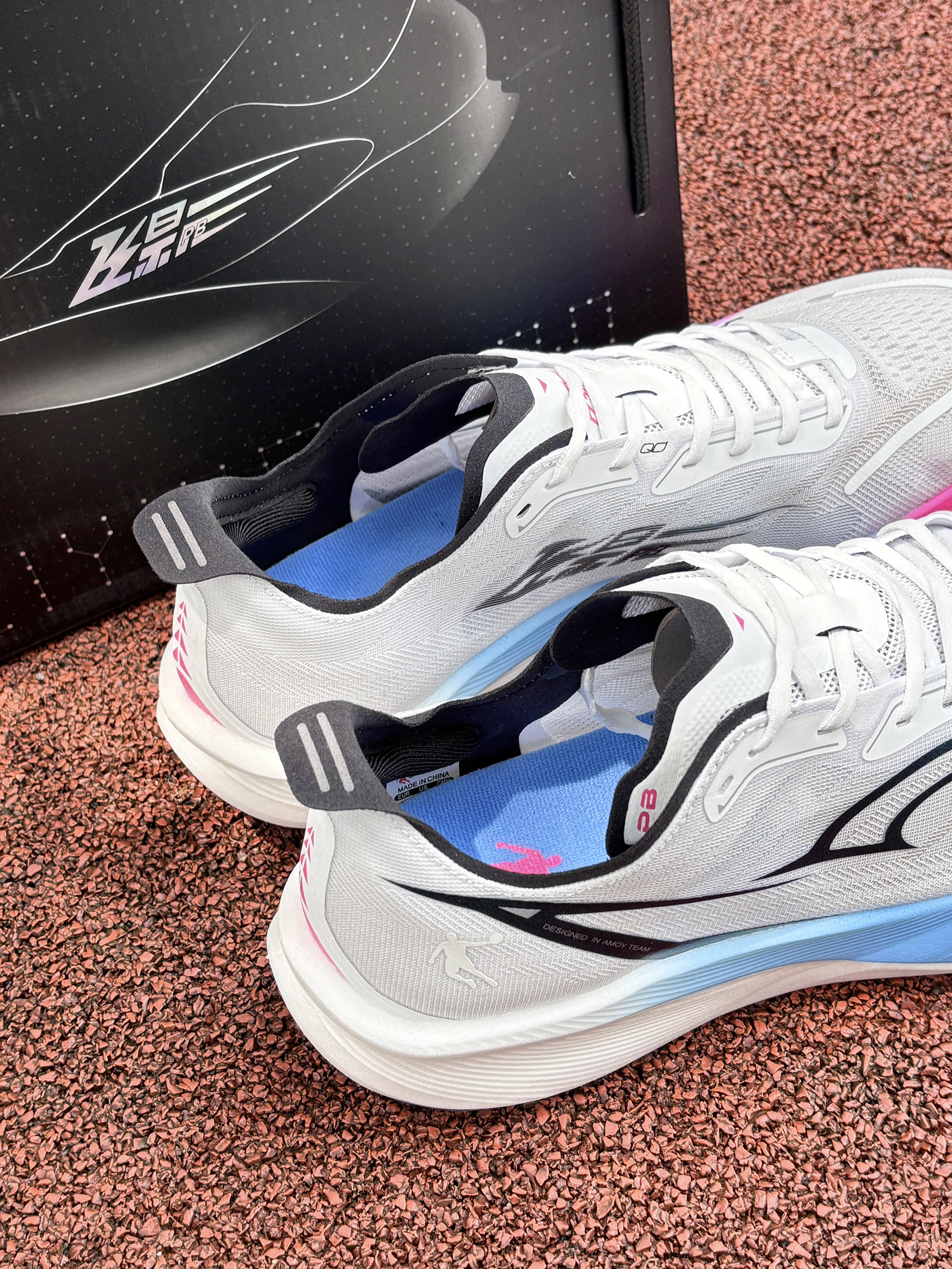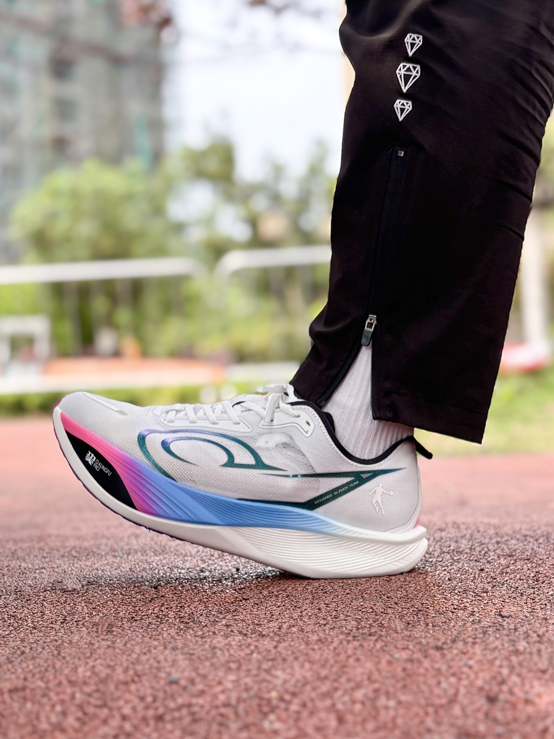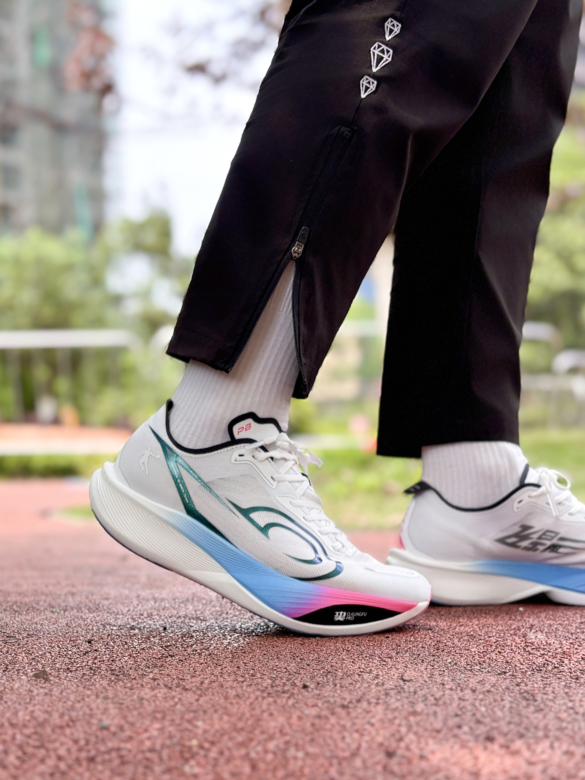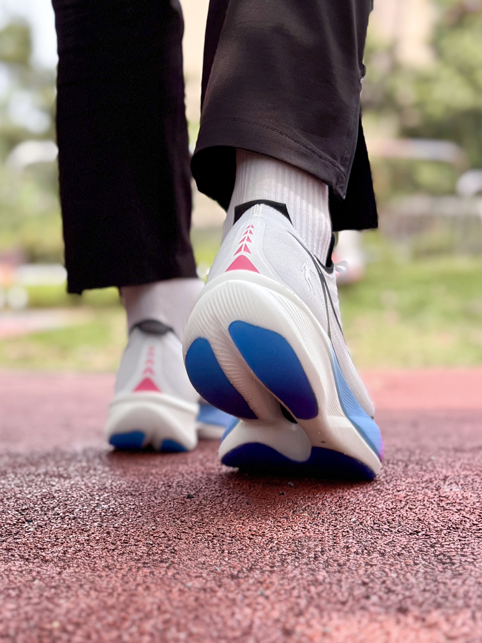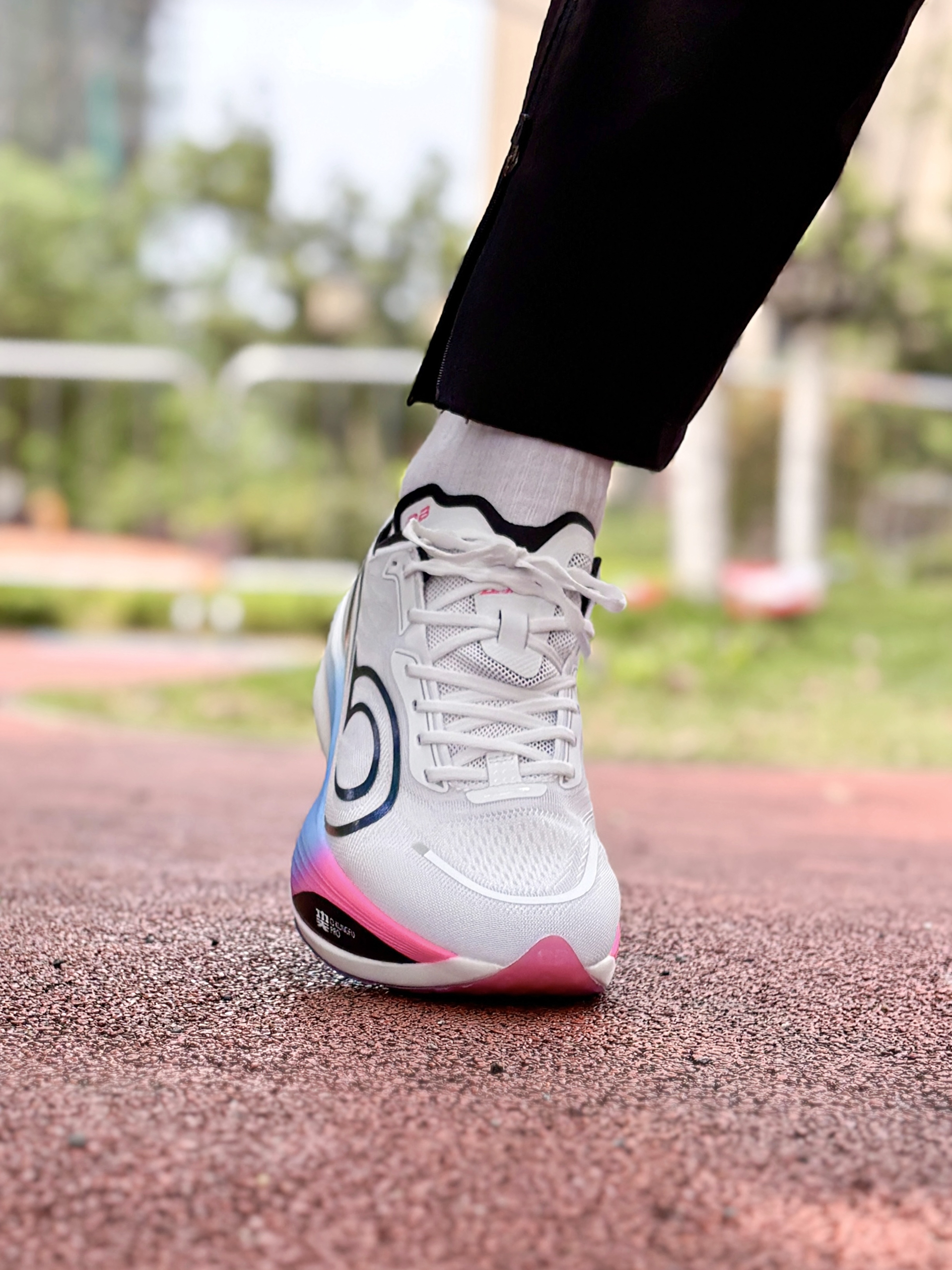 💁♂️:Hi~ 这里是大大纳mi~ 刚上脚飞影PB3增强版时光机,说实话这双鞋真的有戳到本跑渣的审美点,梦幻蓝粉渐变🌈有种霓虹穿越时空隧道的感觉✨ 之前老版磨脚趾的问题终于解决啦,提花鞋面像透气网袜一样贴合👌 跑完不会闷汗也不磨小脚趾(本人宽脚)编织纹路摸着比普通网布扎实,弯折时也没卡脚感~ 中底个人觉得是韧弹派代表,巭PRO双密度不是虚的!前掌蹬地时能感觉到回弹推着你走🚀 后跟落地反而有种...