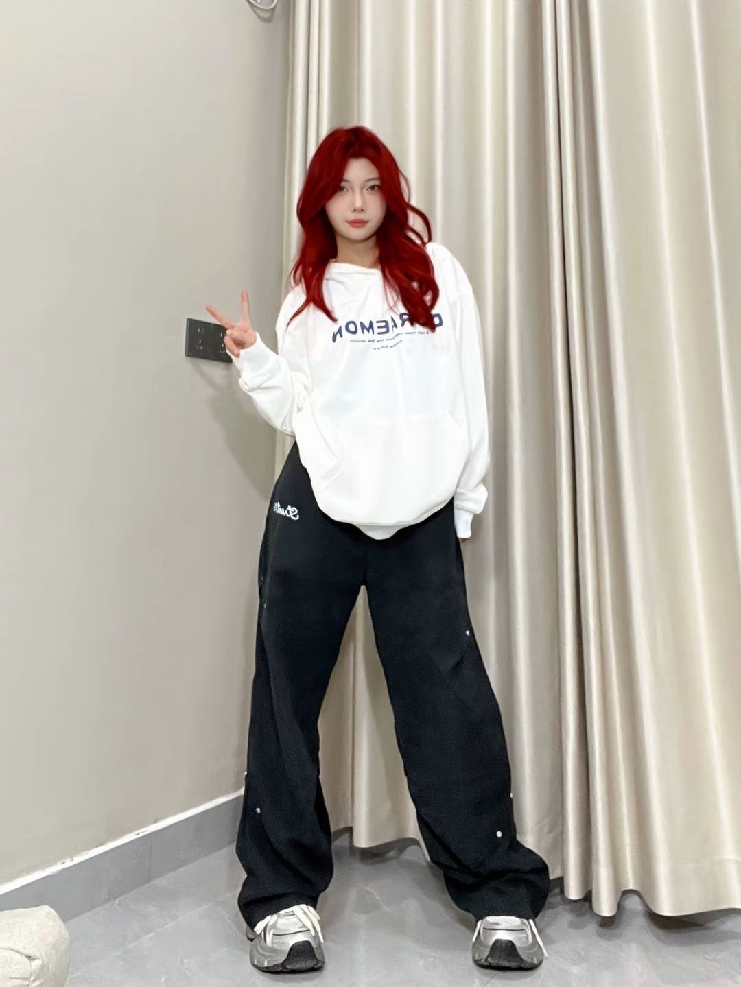 SESAME STREET/芝麻街 2024SS 系带中腰亲肤直筒休闲长裤 男女同款 🐽🐽这套上身遮肉显瘦慵懒感拉满,裤子版型褶皱设计好好看。🐽质感也不错黑色本身就比较百搭,谁穿谁好看而且搭配各种上衣外套都是OK的~🐽面料做工挺不错,走线整齐,🐽我是160 90斤穿m码可参考~图片来自于博主太白biubuu