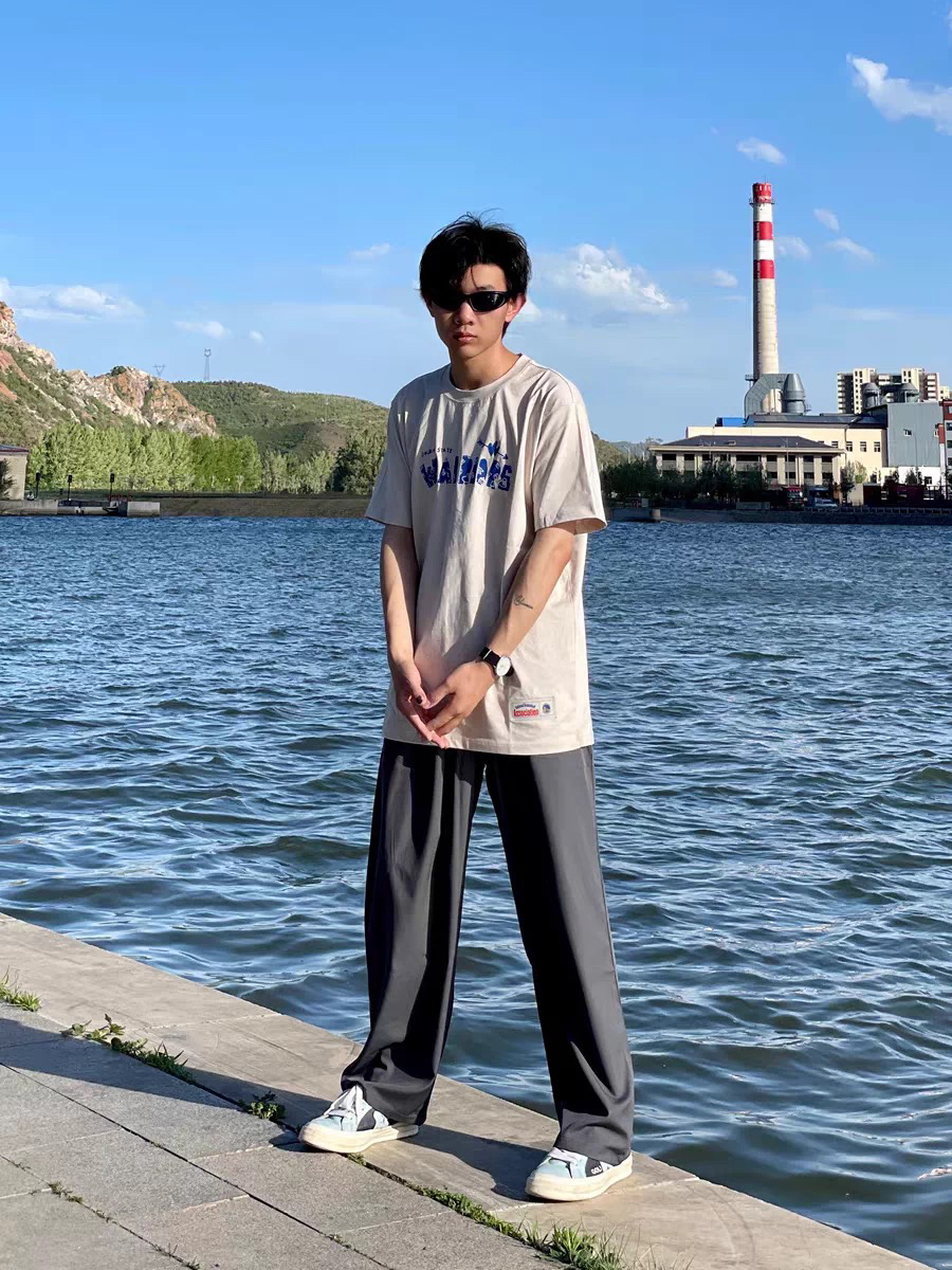早秋通勤怎么穿 选cleanfit T恤搭配没错🚨 搭配性也很高 复古校园风好像怎么搭配都不会错 搭配一条深灰色的直筒休闲西裤就很巴适🚨 有质感又很优雅 版型也正好 非常显腿直又显瘦 @Askyddd🚨