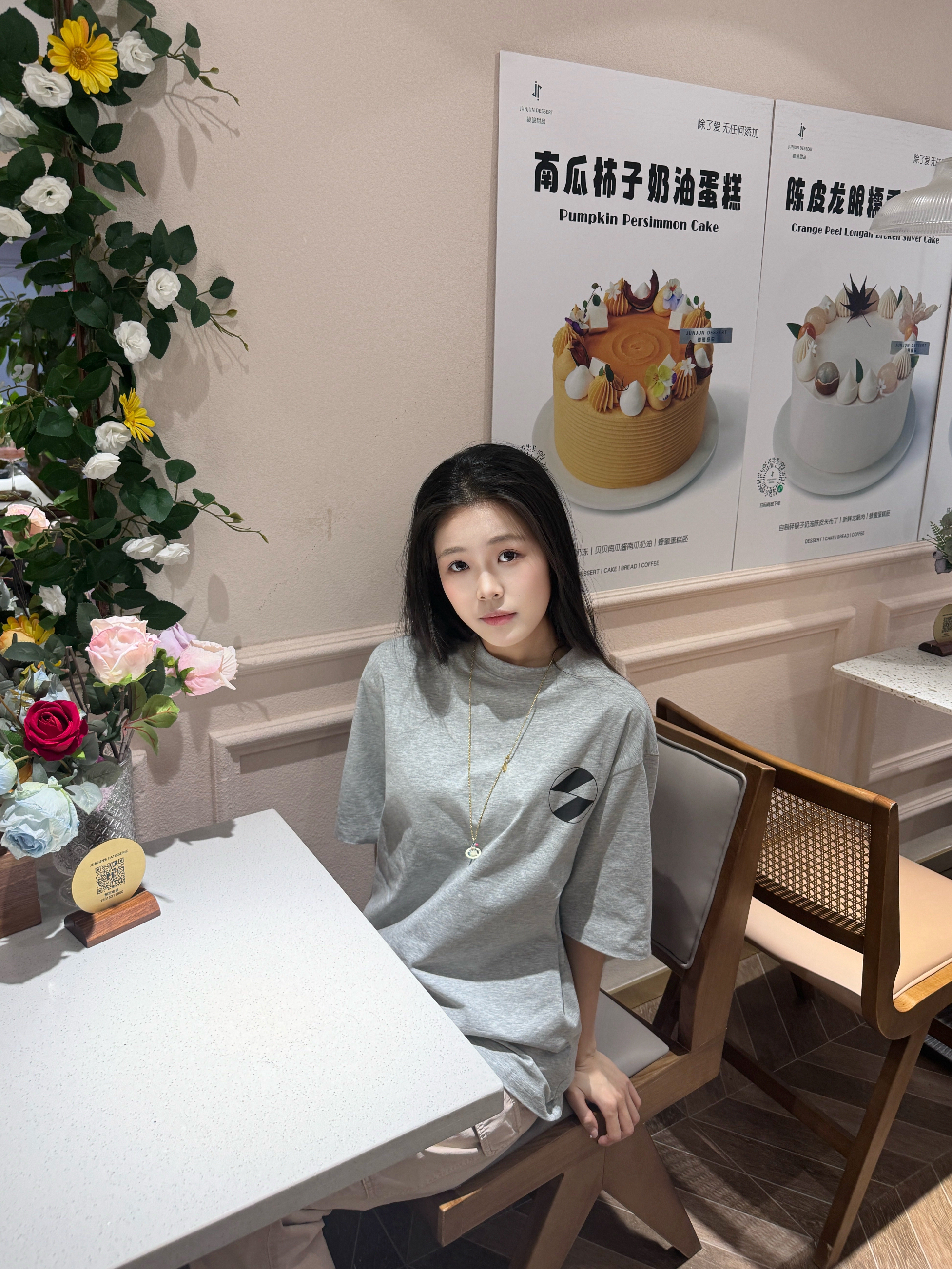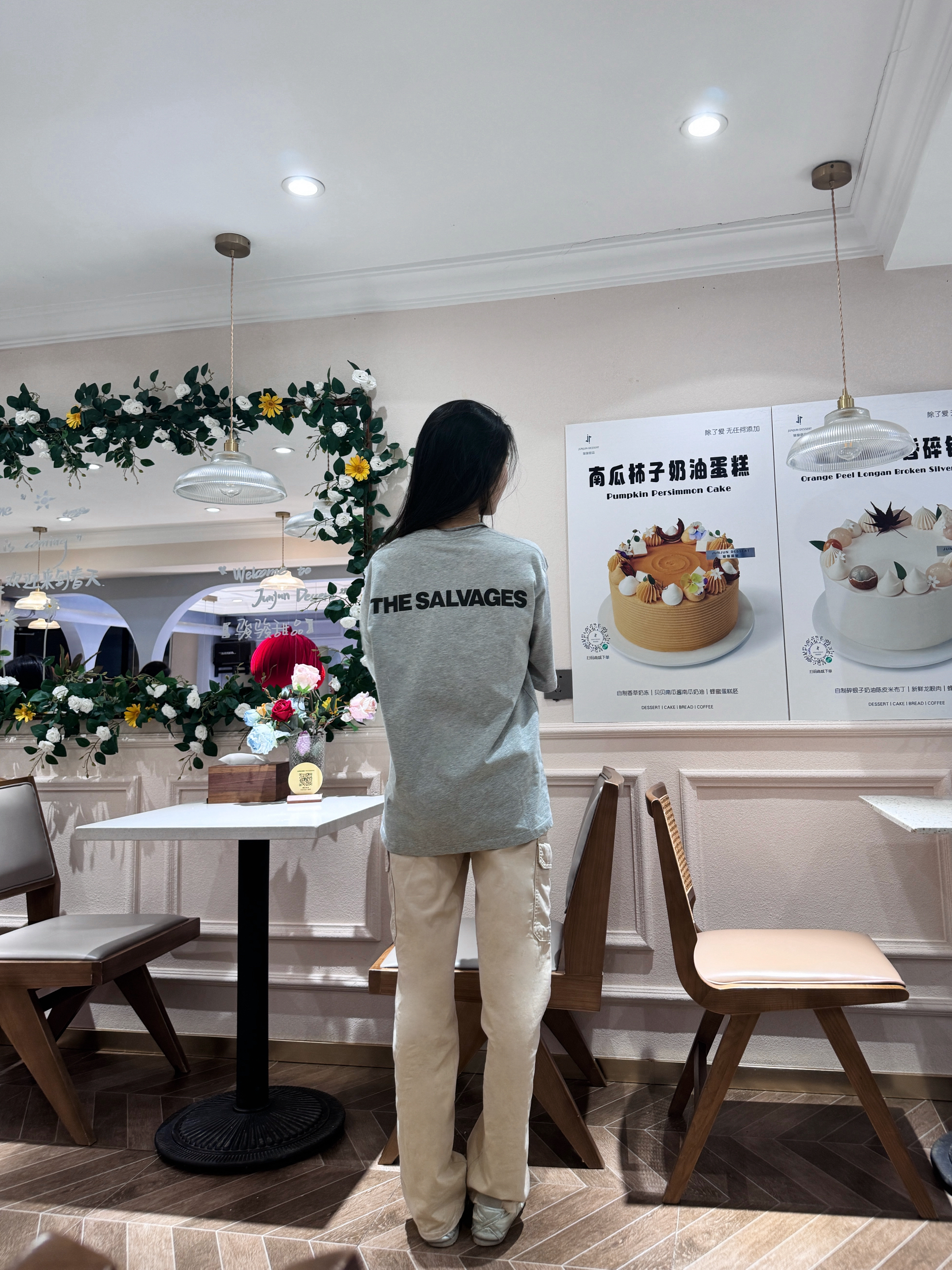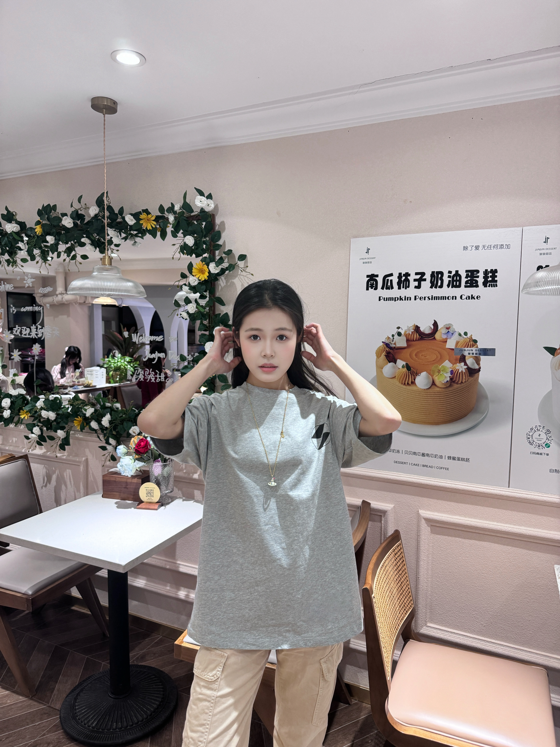 灰粉配色有点小时髦🎏 相比黑白 灰色真的蛮高级💖 后背印花是有点小设计在的😆 📍170/92上身m码效果~