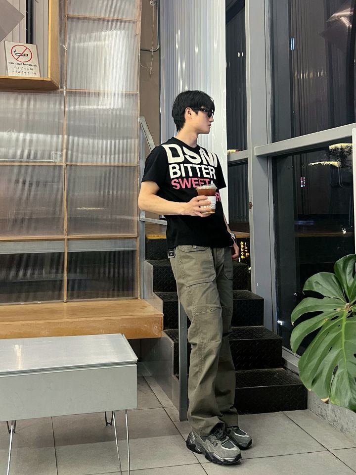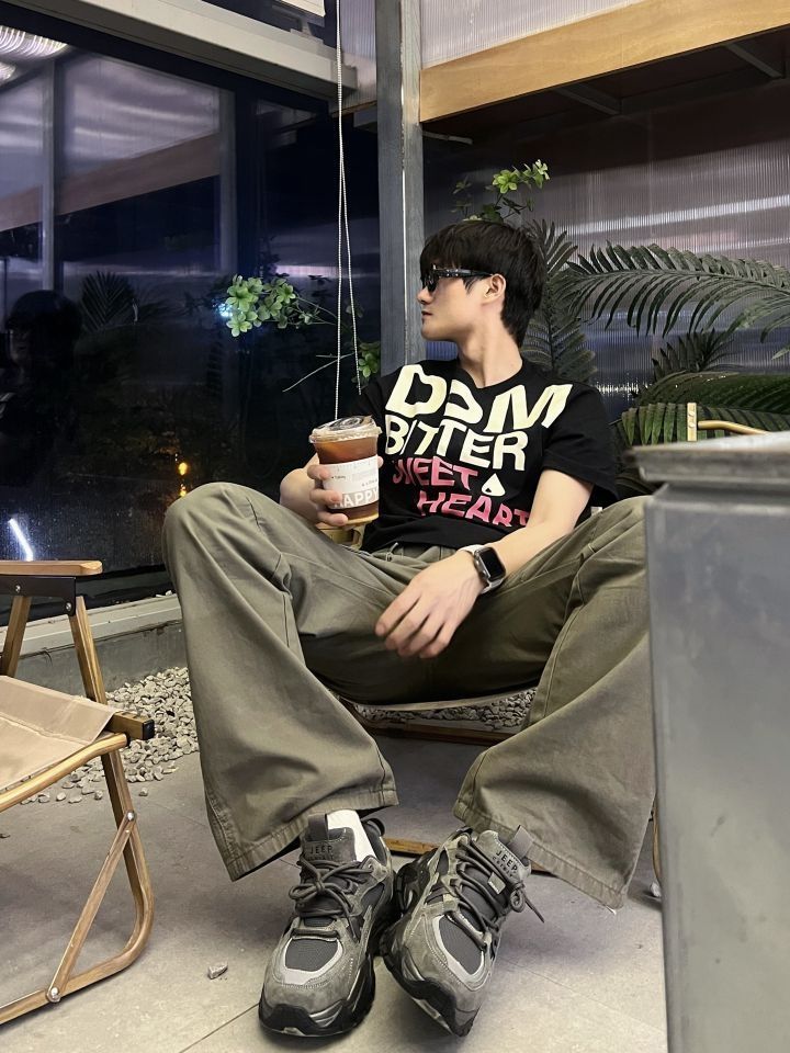 尝试一下工装风穿搭混搭印花体恤👀 这件印花T,字母图案个性又时髦,黑色底色很百搭,不过码数有点偏小,建议往大了选✅ 搭配卡其色工装裤,宽松的裤型和多口袋设计,既舒适又充满机能感。☝️ 鞋子独特的外观和配色,与整体风格比较适配,增加了穿搭的层次感,还让帅气值MAX!💯 (图源网络侵删)