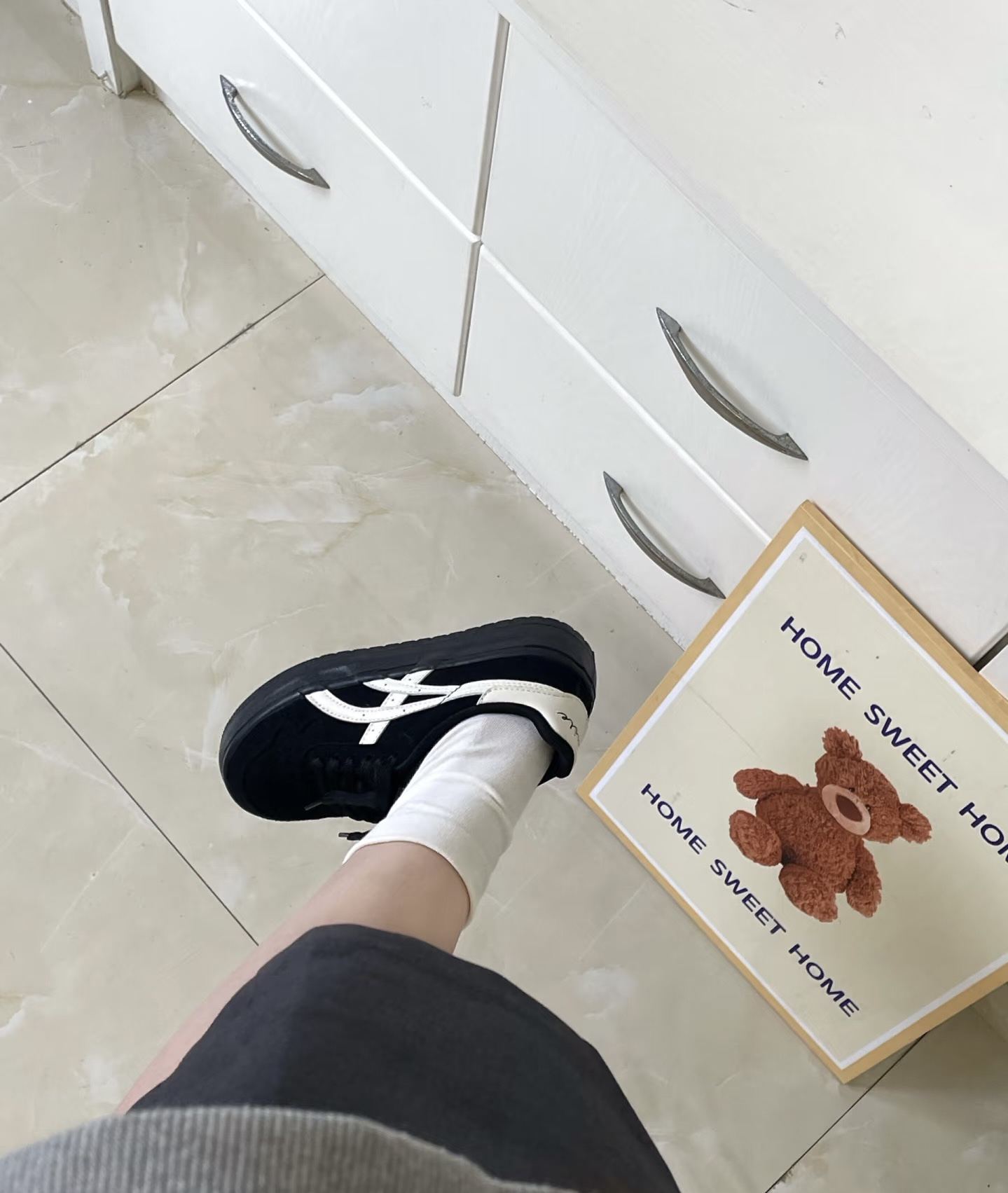 家人们,挖到宝了!这双鞋真的绝!黑白配色经典又百搭,随便搭配袜子和衣服都超有氛围感。厚底设计显高效果一流,而且穿着舒服,走路久了也不累脚。无论是日常出街还是拍照,都能轻松拿捏时尚感,闭眼入不亏!