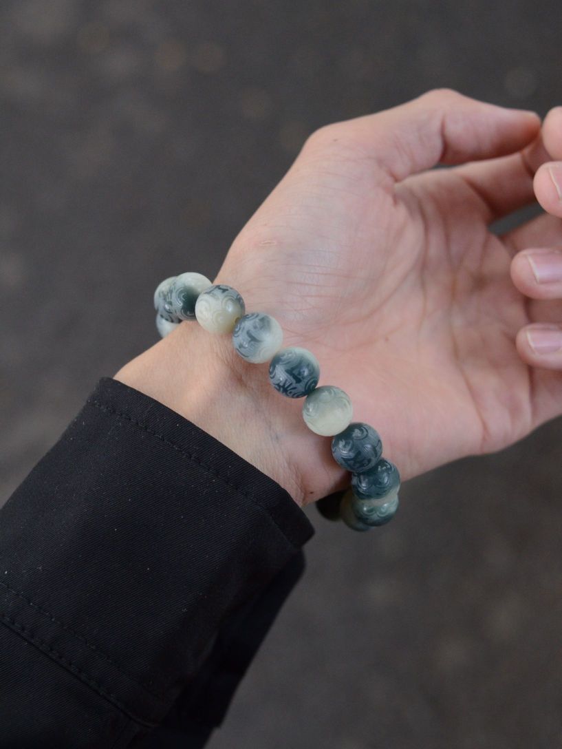 这菩提根手串的颜色太有感觉了吧 这手串太适合我啦,它的颜色是那种渐变的,每一颗珠子的颜色都不一样。 它每颗珠子都刻得有字,刻得也是很精细的,字迹清晰 还有一个很有意思的是,它是生肖设计哟,我属兔所以我的是生肖兔守护神,每个生肖图案都不一样,这设计真用心了。 珠子是天然的,闻着有淡淡的香味,真的喜欢这种自然的味道,我还常拿起来闻闻呢