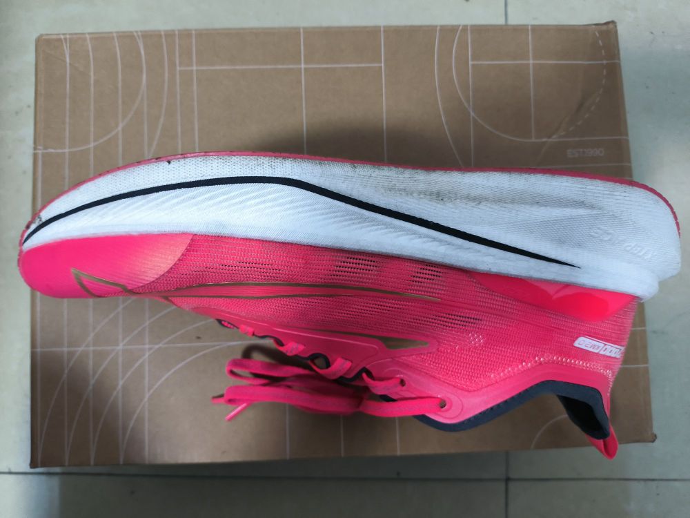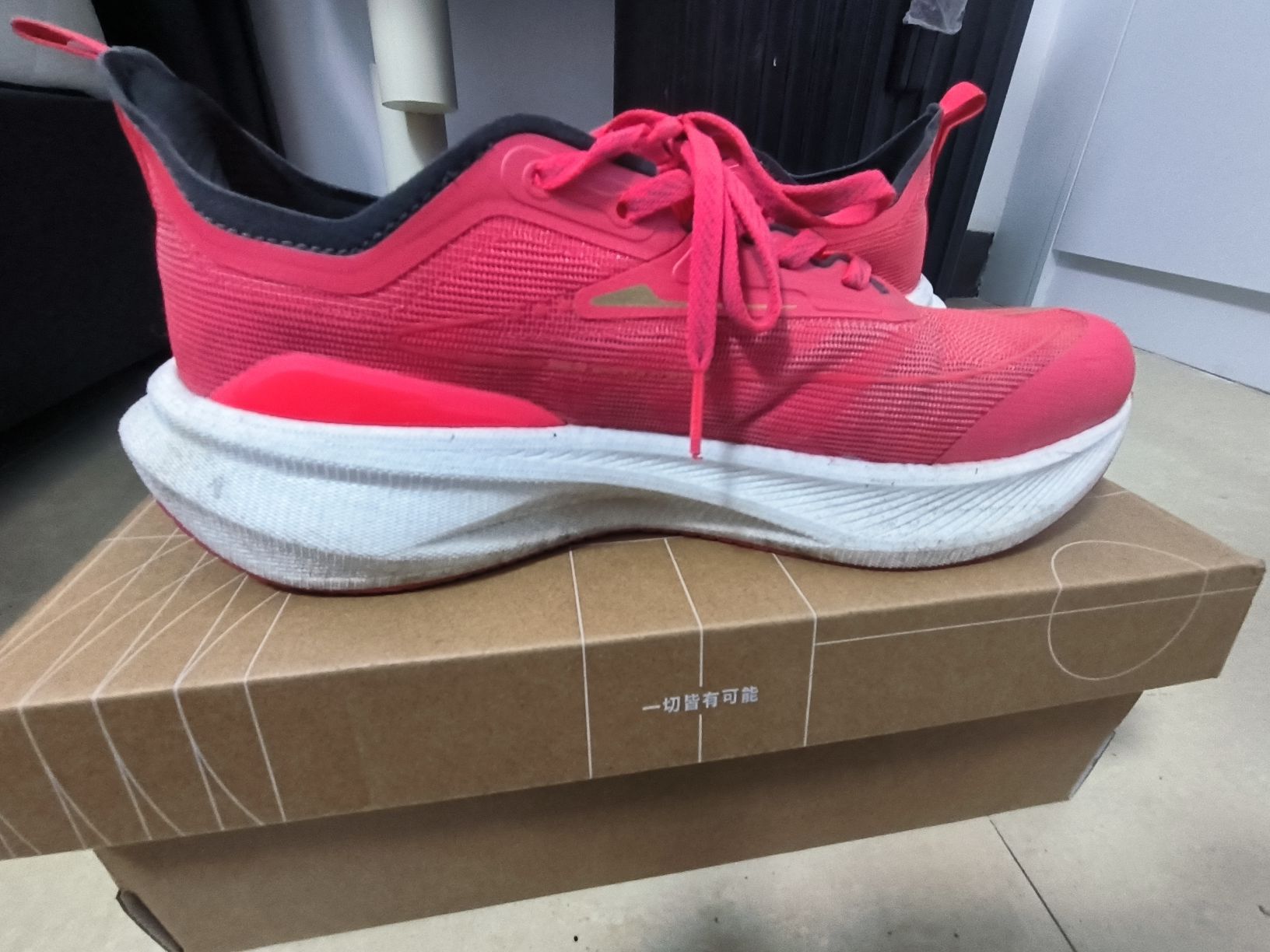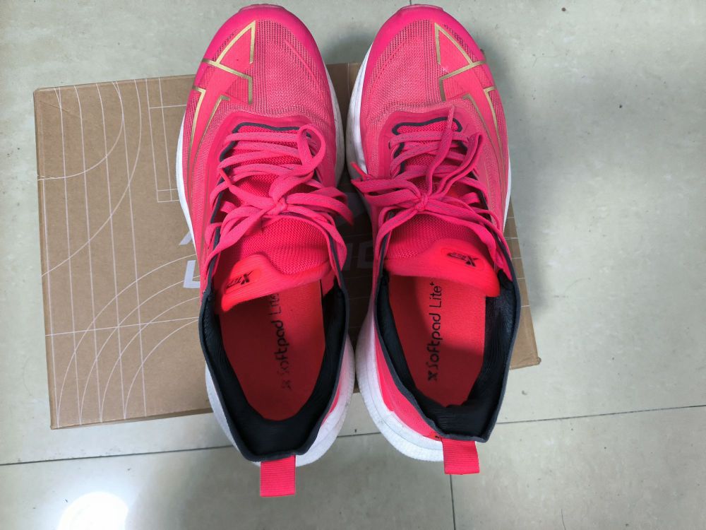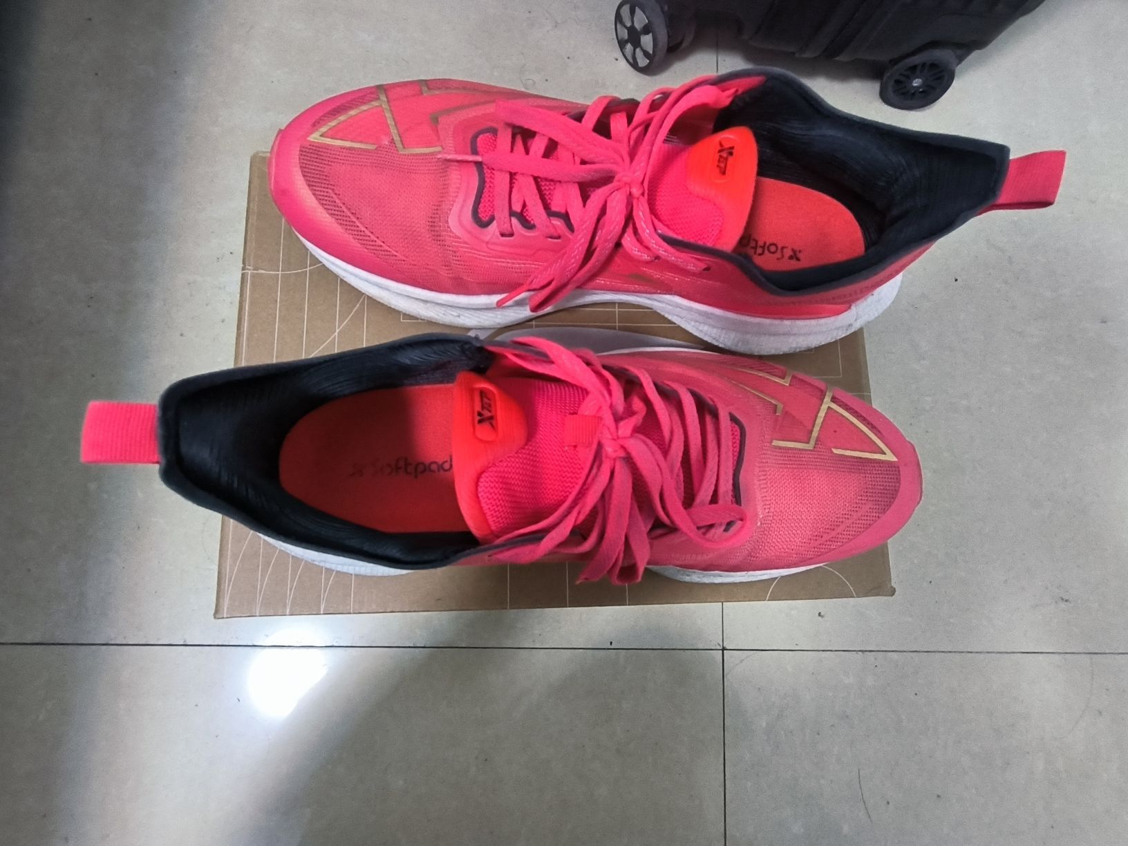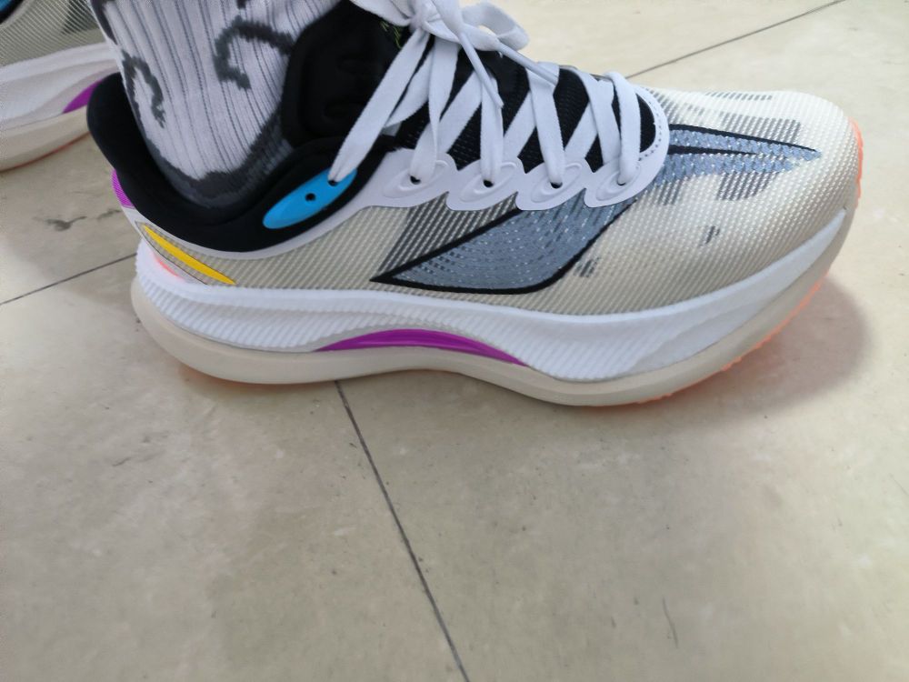 这双血脉觉醒配色,上脚还是很帅的,特别是侧边的那个黑线。抗扭的话中间也是有块TPU抗扭片,后跟填充比较够,我穿这么久还发现掉跟,然后码数正,按正常买就行。透气性在线的,夏天穿没得问题,撘配的是xtep ACE也是特步的招牌来的,相当于买李宁跑鞋看是不是䨻。亮点:不易脏,好清洗。