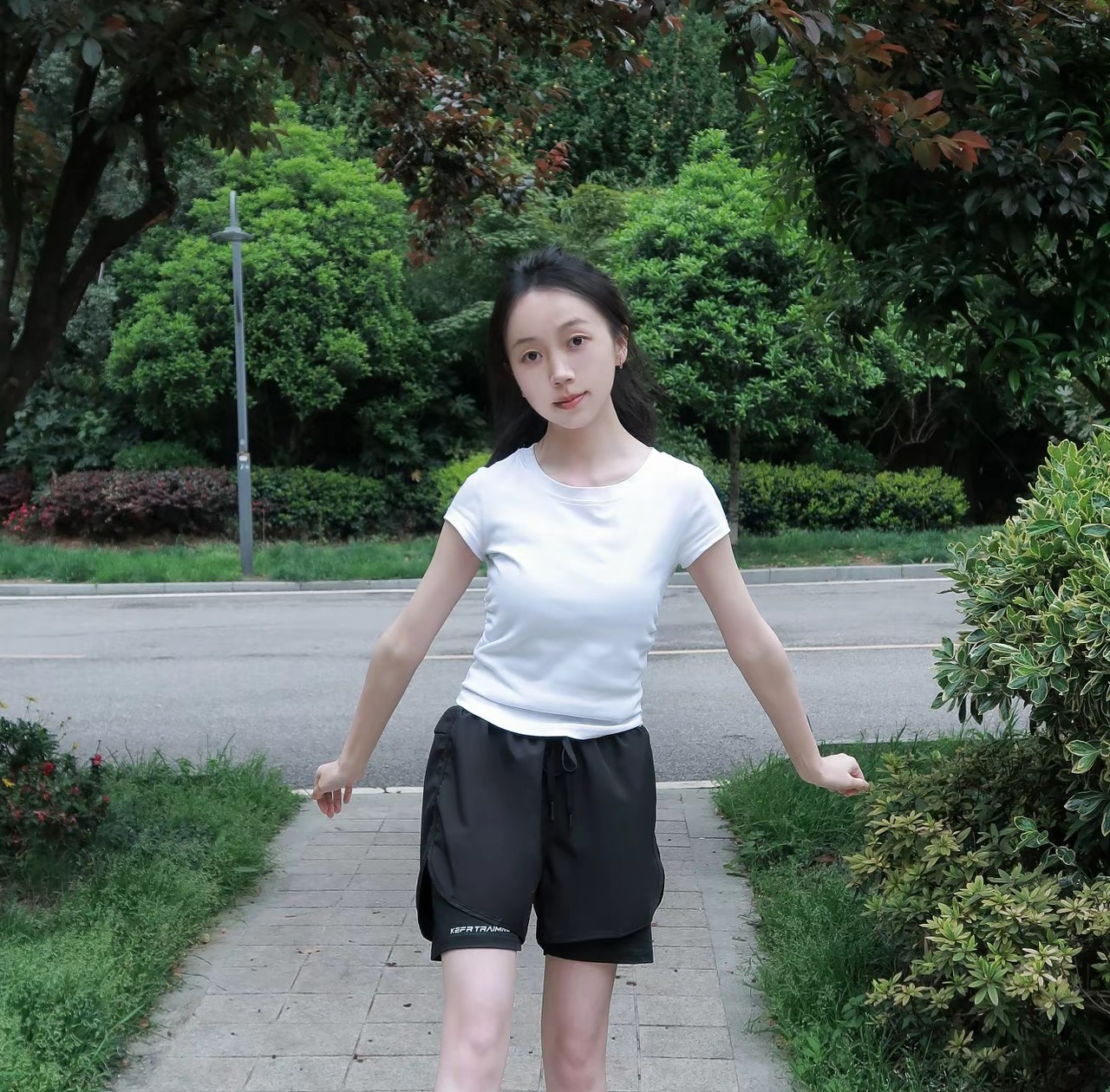 宝子们!今日份超绝运动风穿搭来啦~最近天气越来越暖和,运动的心也蠢蠢欲动。我今天这套穿搭,简直是运动休闲两不误。上身穿的是经典的白色短袖T恤,简约又干净,随便一搭就很有范儿。下装是这条黑色假两件跑步健身短裤,我真的超爱!它是那种薄款速干面料,特别适合运动的时候穿,像我平时去跑步、打篮球,或者简单的体育生日常训练,穿上它完全没负担。 图片来源于@巧克力蜀黍