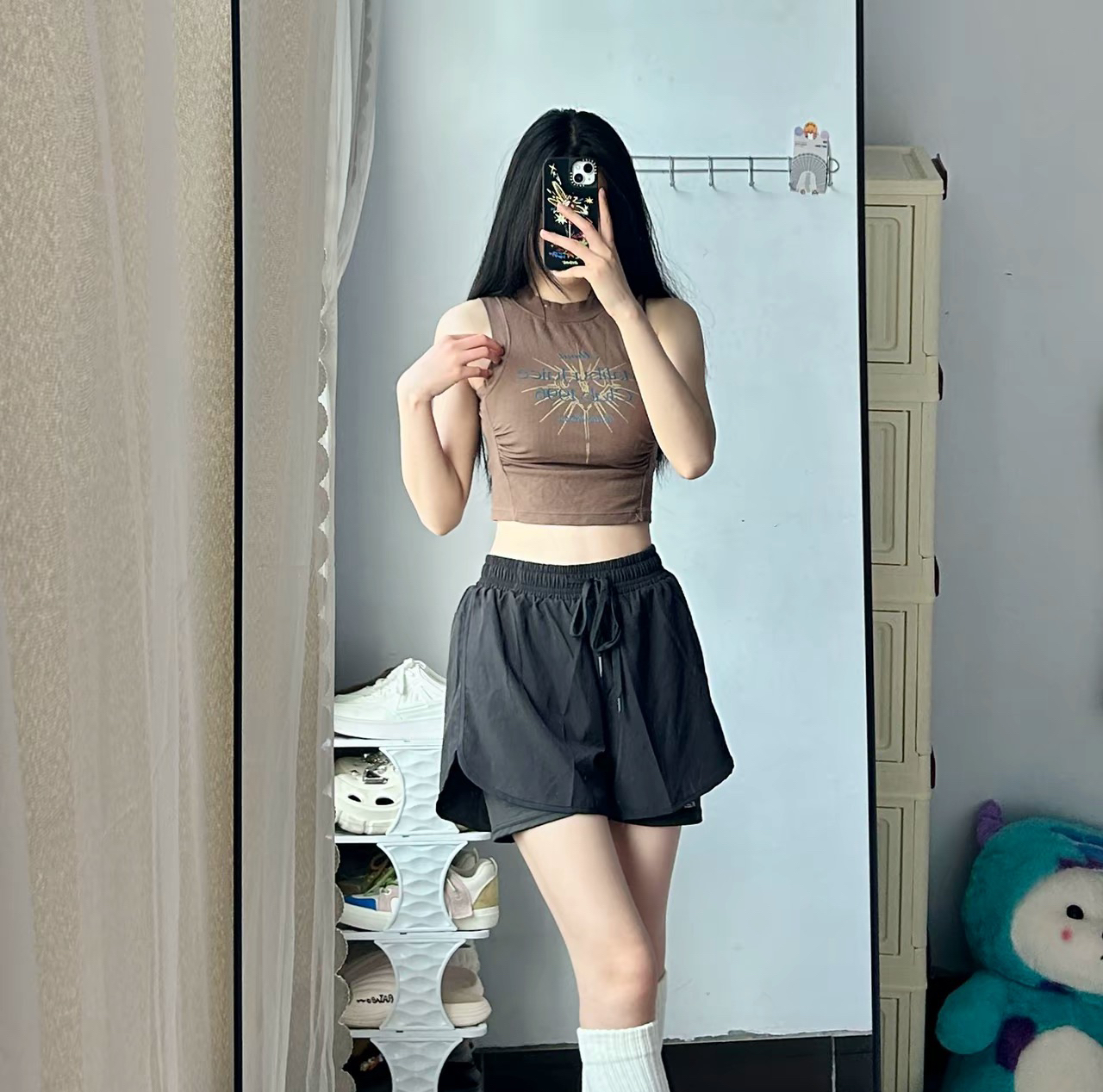 哈喽.•今天穿的短裤面料冰冰凉凉的穿上舒服又透气⑤里面还带了一个安全裤,非常贴心运动穿也不怕走光而且黑色也非常百搭,是男女同款的百搭不挑人我163/90斤穿的是M码的 图片来源于@聪明蛋