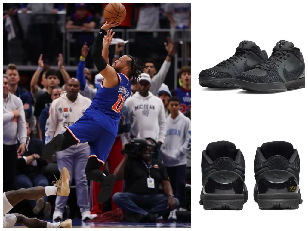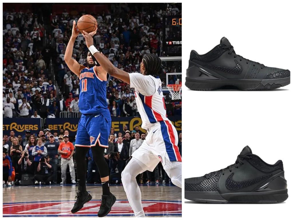 今日NBA今日中尼克斯队球星杰伦布伦森上脚Nike Kobe 4 Protro“Black Mamba”并在终场前四秒钟弧顶晃开汤普森命中准绝杀三分,充分践行黑曼巴精神。 Nike Kobe 4 Protro“Black Mamba”是以科比绰号黑曼巴为灵感设计,融合了科比赛场精神与蛇纹美学,兼具实战性能与文化意义。 纯黑色的主调象征赛场上的侵略性与尤雅。鞋面采用黑色麂皮与蛇鳞压纹皮革拼接增强了球...