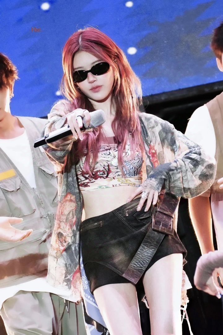 赵露思自从回归之后状态真的是越来越好了 红发+墨镜+吊带泳衣造型全场开麦唱跳! 这舞台表现力和火辣的身材,妥妥顶流呀!