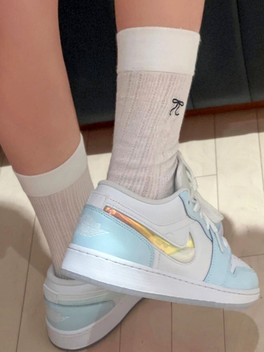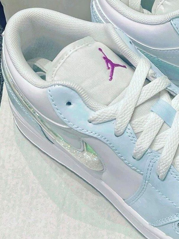 这双AJ太喜欢了~买了它一天晃800遍流沙哈哈一闪一闪亮晶晶超适合出游!浅蓝色尊嘟好清爽而且超级适合出门,无论是夏天还是秋天真的好适合出门,百搭款穿什么衣服都合适,直接爱麻了,搭配闪闪流沙真的好看!!!