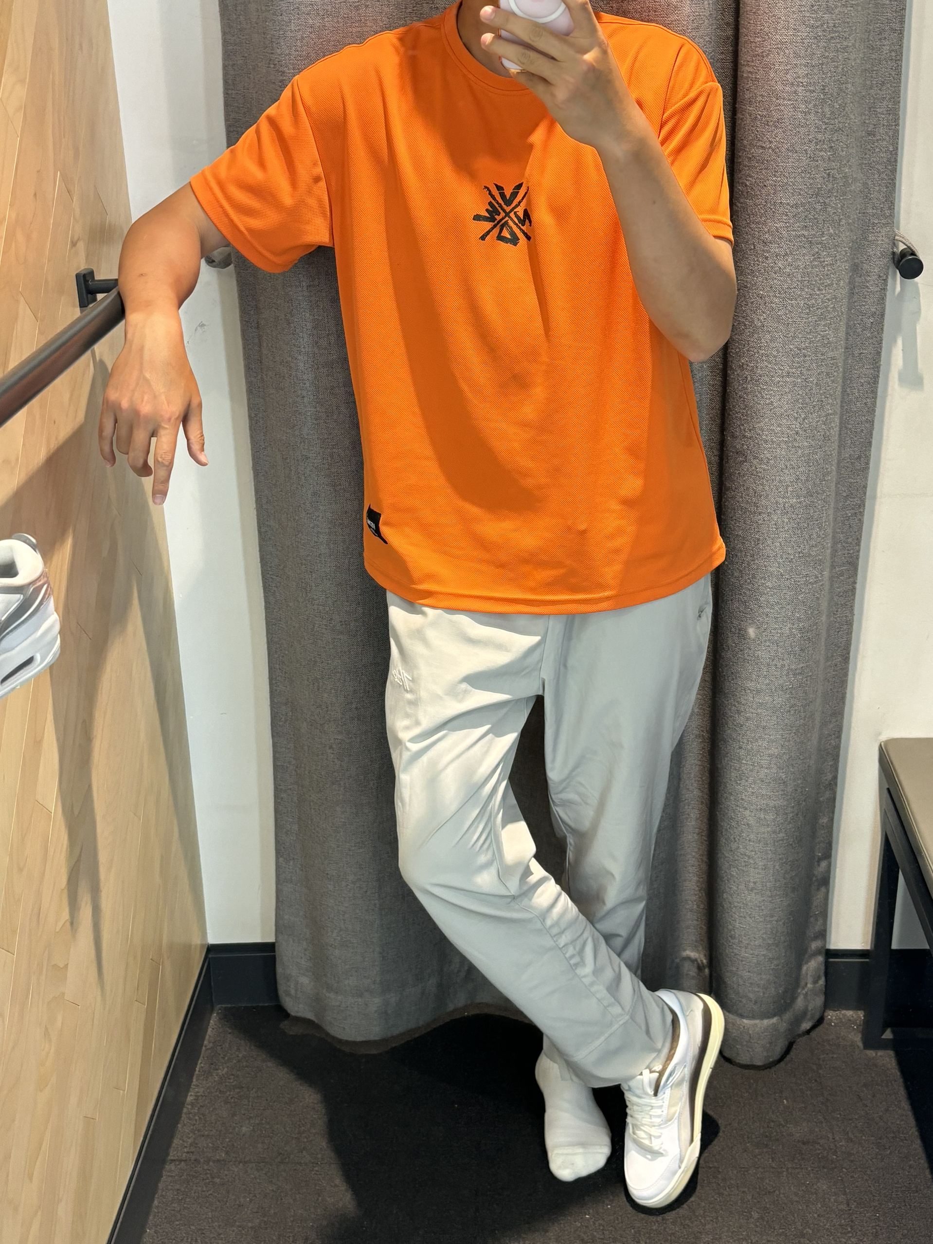 #夏日多巴胺显眼包 #潮鞋捕手计划 #不同段位选跑鞋 #520心随鞋动 #这件T恤超百搭 夏日炎炎得穿点颜色多的吧兄弟们 橙色、蓝色、灰色搭配一身 👔橙色短袖 很有活力搭配黑色logo很帅 👖灰色直筒裤侧面开叉 整个显高还很体育生的感觉 👟灰蓝色flight court 深色系和亮色上身形成对比