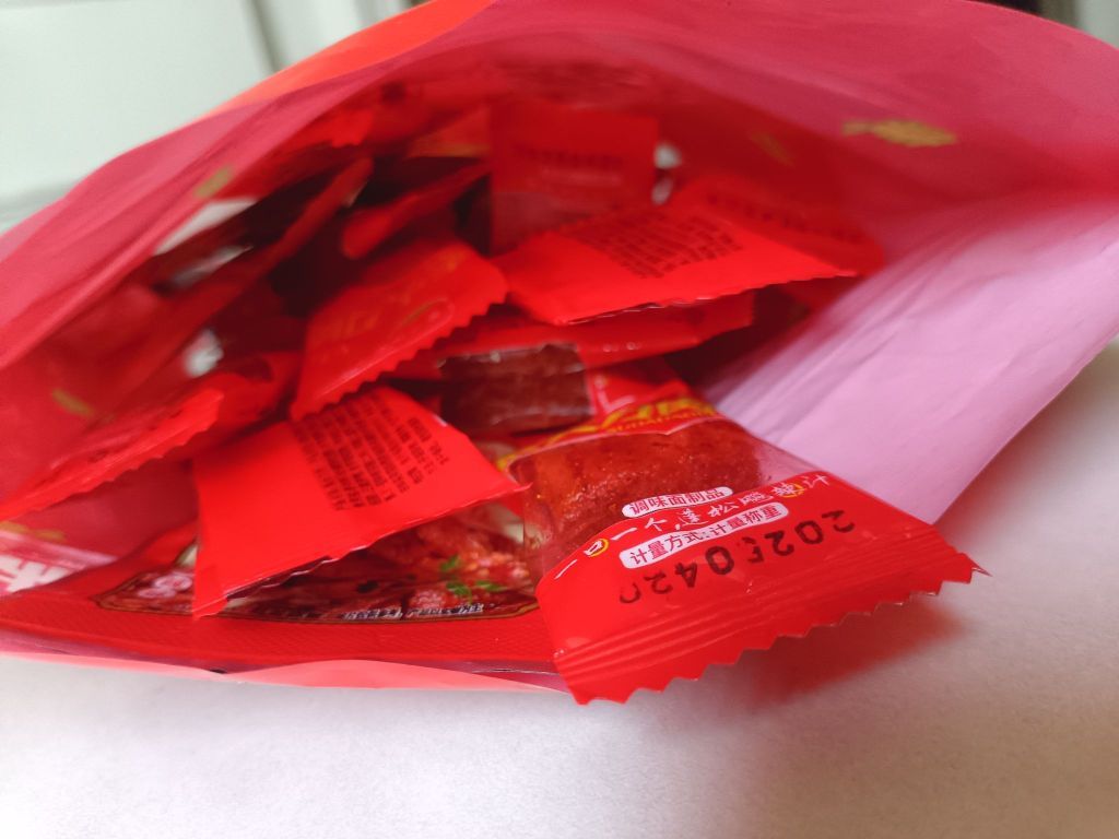 拿过来?我感觉这个就感觉非常奇怪,辣条的味道很奇怪,油味非常重,但是不好闻(@·wÃo),打开一看,我嘞个去,一大半包的大刀肉,糊弄鬼嘞。 最关键的是油都露出来了◇9(w`*)9◇,好奇怪的味道啊!一点都不喜欢!而且里面没有好吃的。