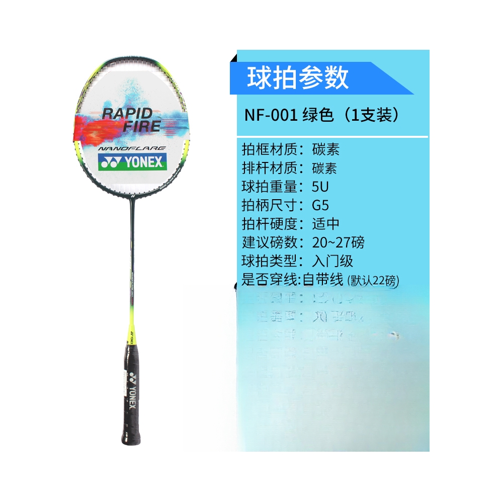 本篇笔记关联了YONEX/尤尼克斯 疾光系列 疾光NF-001 初学训练 耐用超轻 耐打 高弹性 速度型 入门级 全碳素 羽毛球拍 YONEX-NF001 黄色等商品,为用户提供真实的使用体验和购买参考。