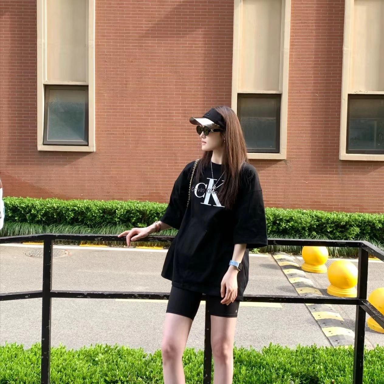 Ck半袖是我见过女孩子穿,最有感觉的衣服半袖T。 这款黑色的ck我是真的觉得很好搭配 ,修身款真的很显瘦而且质量超好 ,透气的同时也做到了厚度适中 ,黑色就属于怎么搭配都不会出错那种真的很绝~ 图片来源于@睡不醒的小王