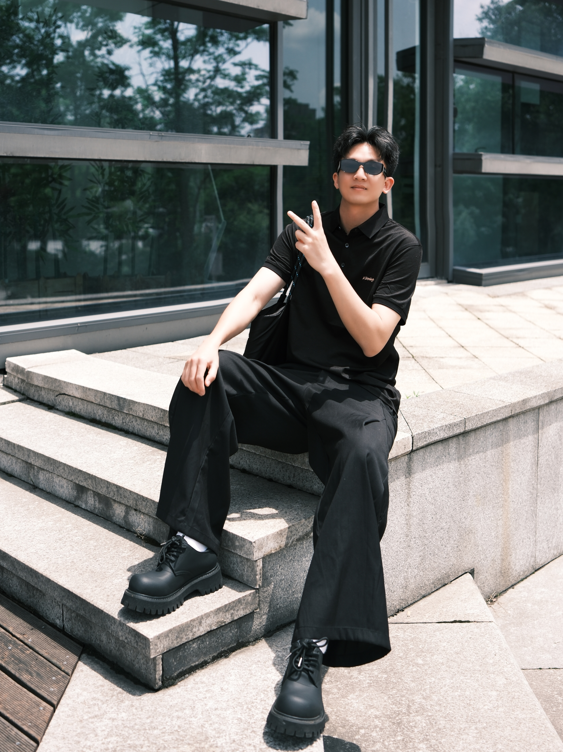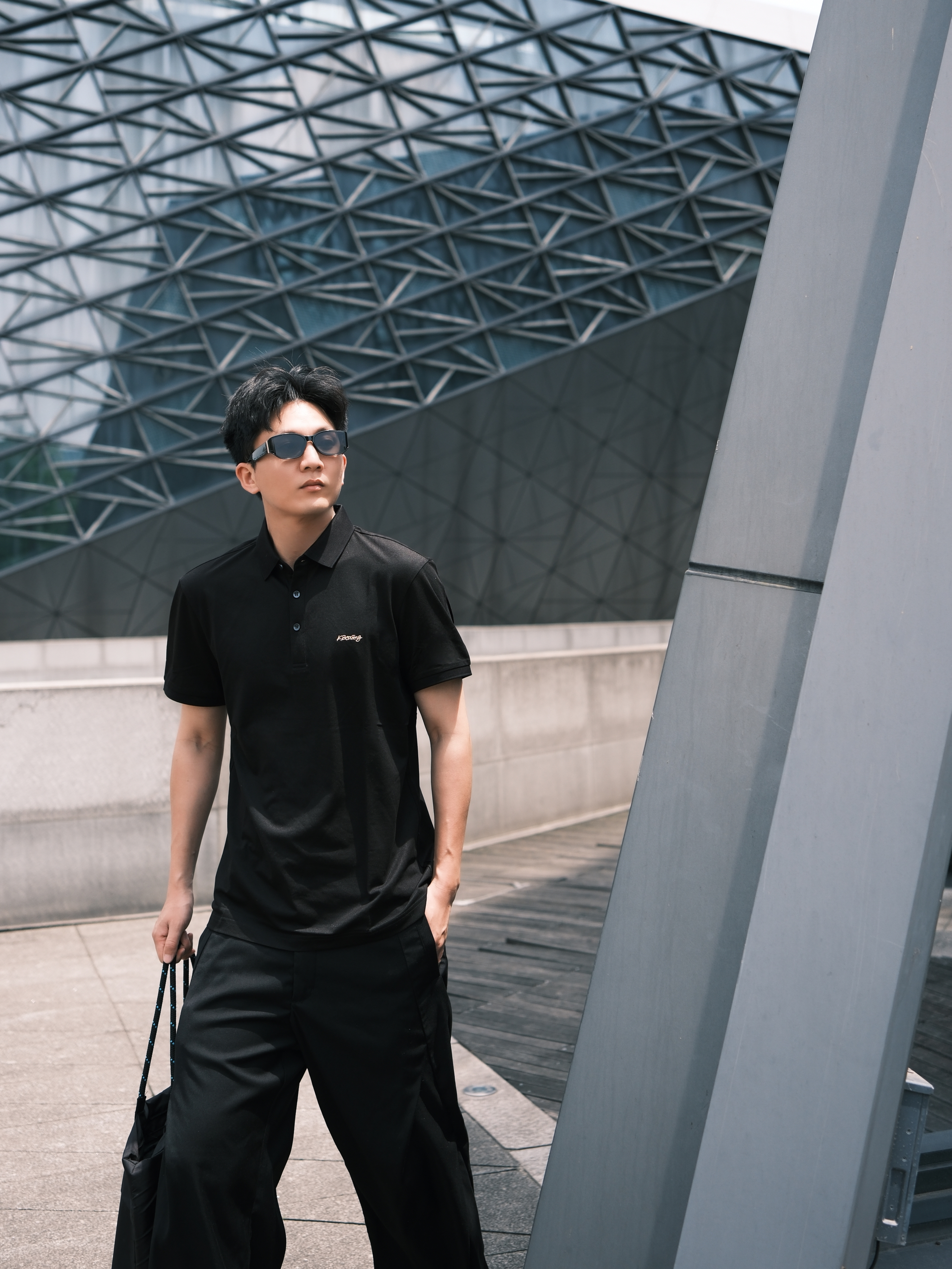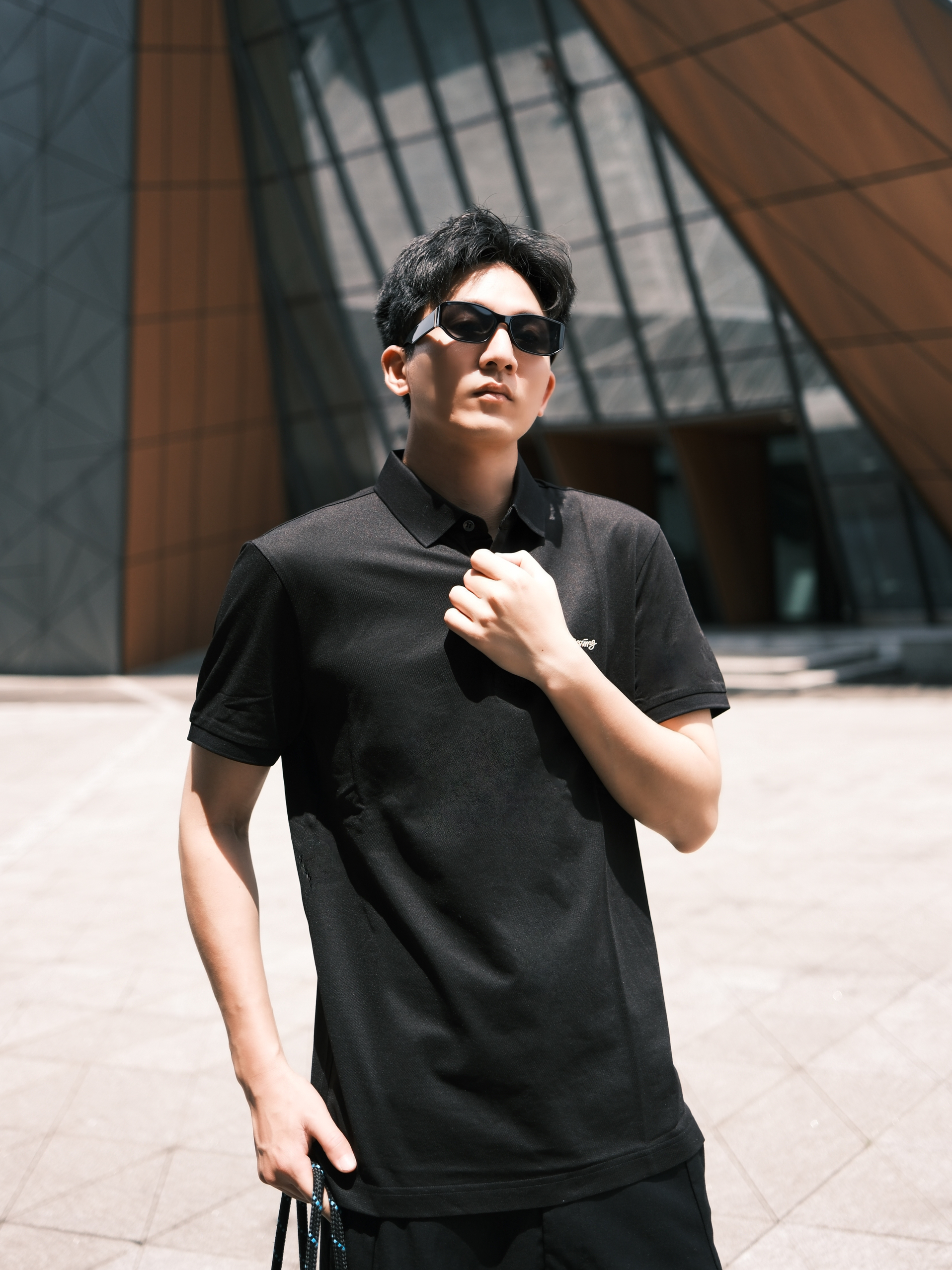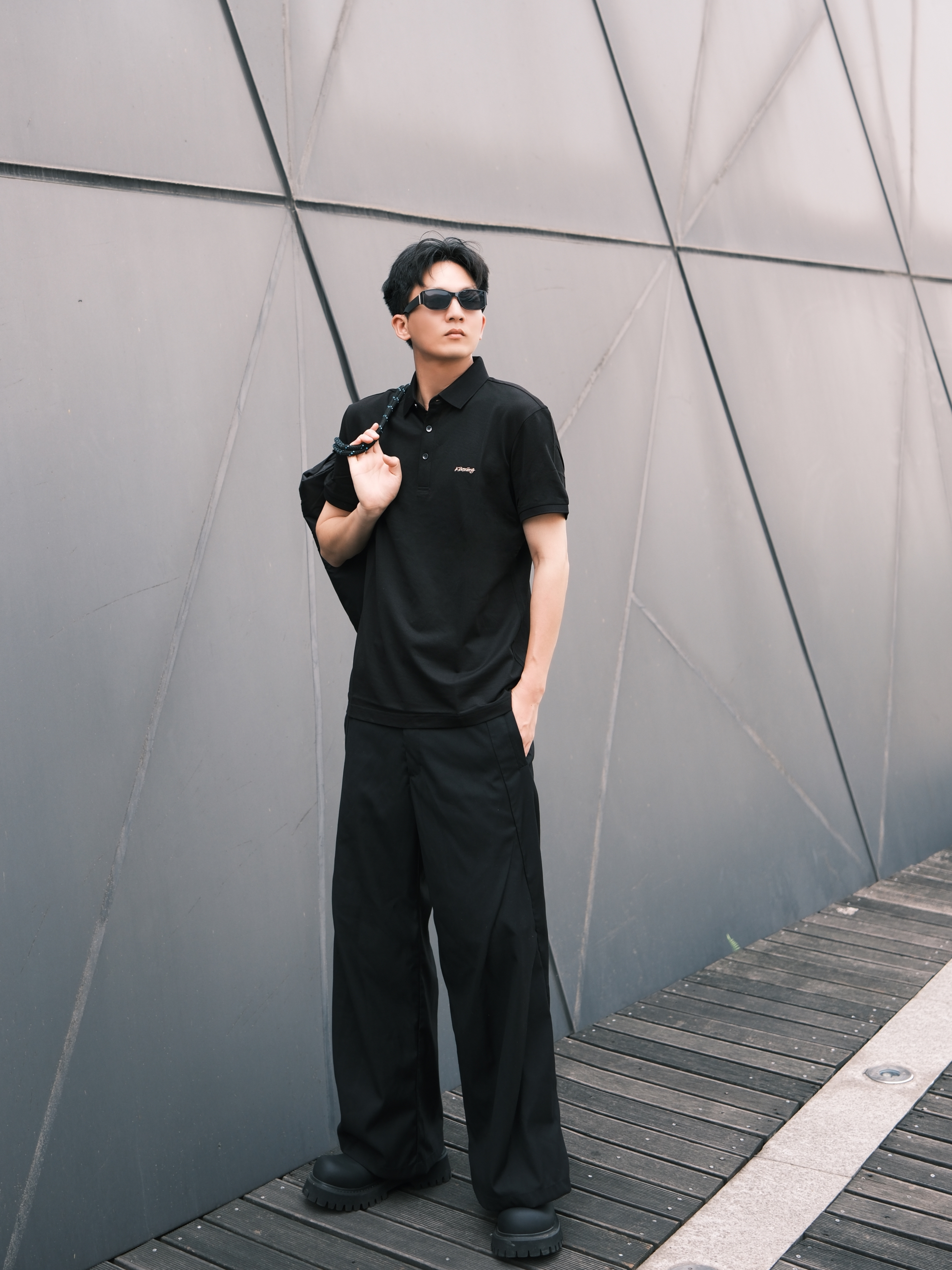 Hi,这里是房东-啊~ 今天分享一下偏商务的休闲风穿搭吧~ 轻松时尚感轻松拿捏了,好穿又好看 劲霸男装黑色logo标签短袖T恤衫 经典的翻领,直接把气质拉满了 版型宽松舒适,上身线条却很硬朗 想要休闲一些,搭配同色系的休闲裤 脚底可以穿皮鞋,通勤又帅气 轻松get一整个风度偏偏商务精英穿搭