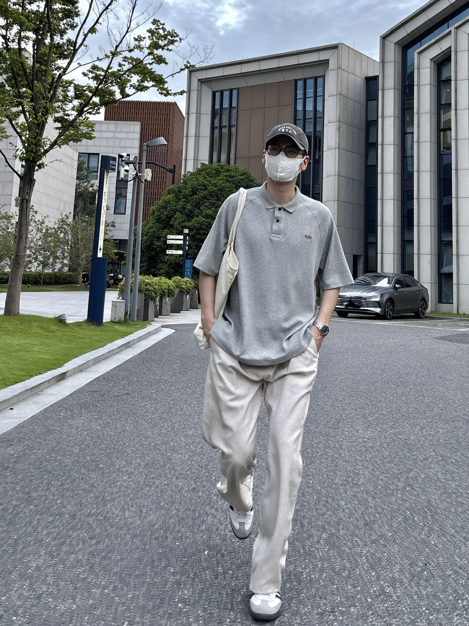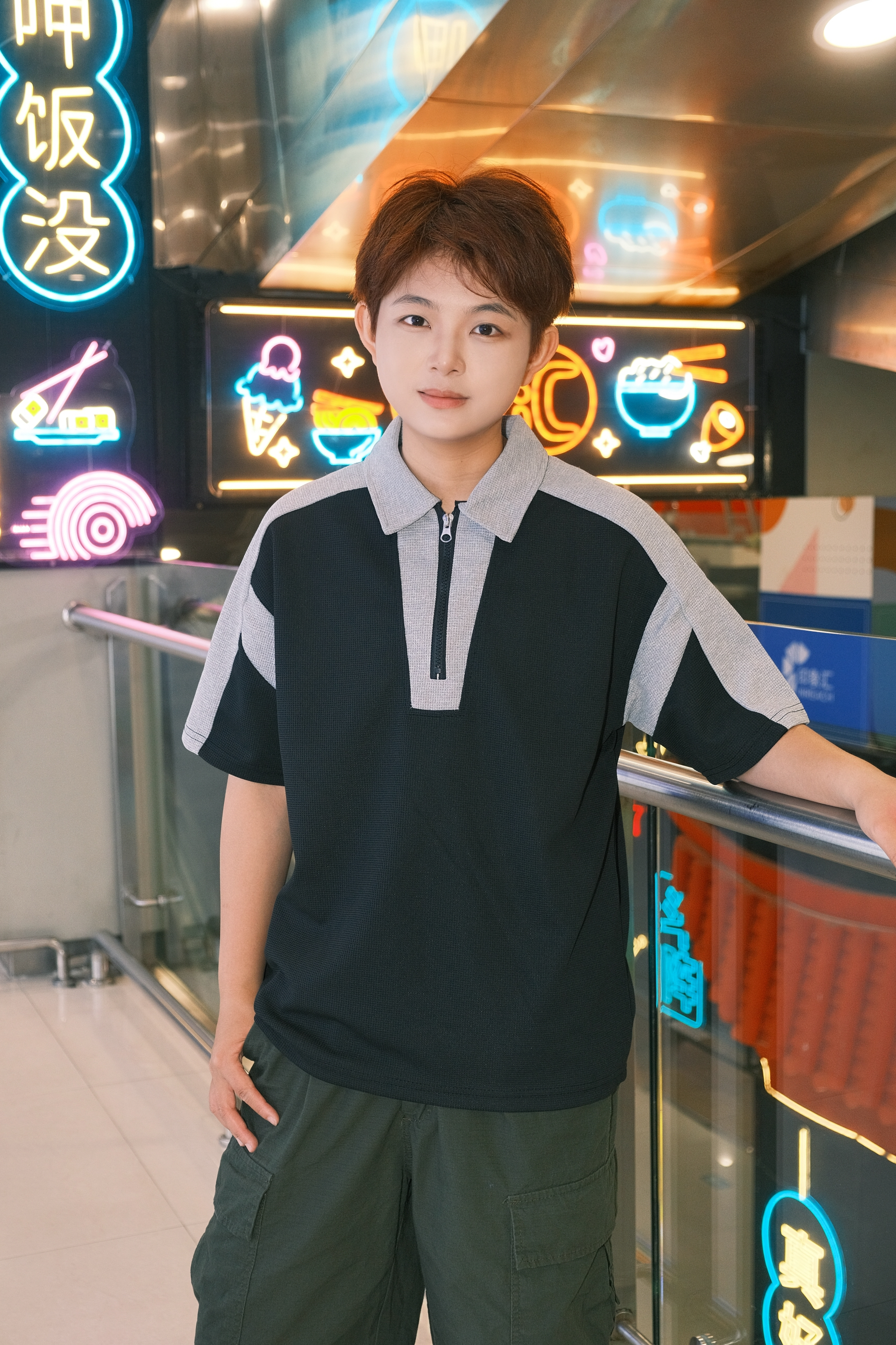宝子们看过来👀 这次分享一套超有范儿的穿搭!C位就是这件黑灰拼接的短袖polo衫~ 领子和袖子的灰色部分,和黑色主体撞色,再加上拉链设计,简约又不失时尚感,随便一穿就是街头最靓的仔🤩 下身搭配军绿色工装裤,宽松的版型超有个性,和短袖搭在一起,休闲中带着酷帅~ 整体适配度100%,不管是逛商场还是和朋友聚会,这么穿都超合适,轻松拿捏氛围感📸 宝子们赶紧抄作业!