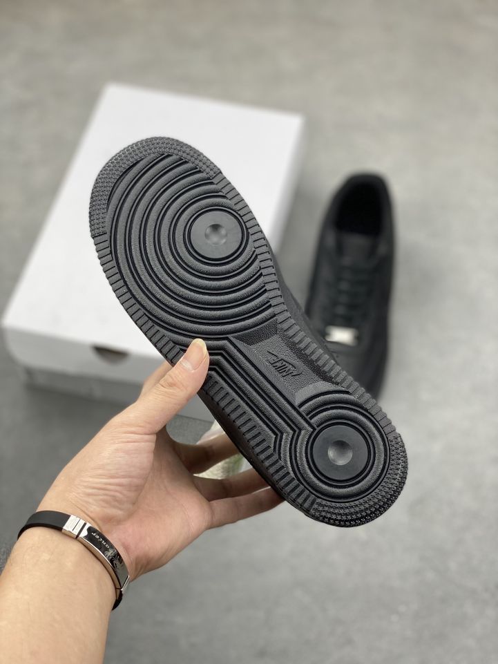 适用人群:男士,低帮设计,四季可穿 设计与外观 风格:经典空军一号低帮轮廓,全黑配色(鞋面、鞋底、鞋带均为黑色),简约百搭,适合运动和休闲场景。 材质:鞋面采用优质合成革,触感柔软且耐磨;鞋底为复合橡胶材质,搭配Nike气垫技术,缓震性能出色。 细节:金属鞋带扣、鞋舌/后跟Nike标识,细节设计提升整体质感。 性能与舒适度 缓震支撑:气垫中底提供良好回弹,长时间行...