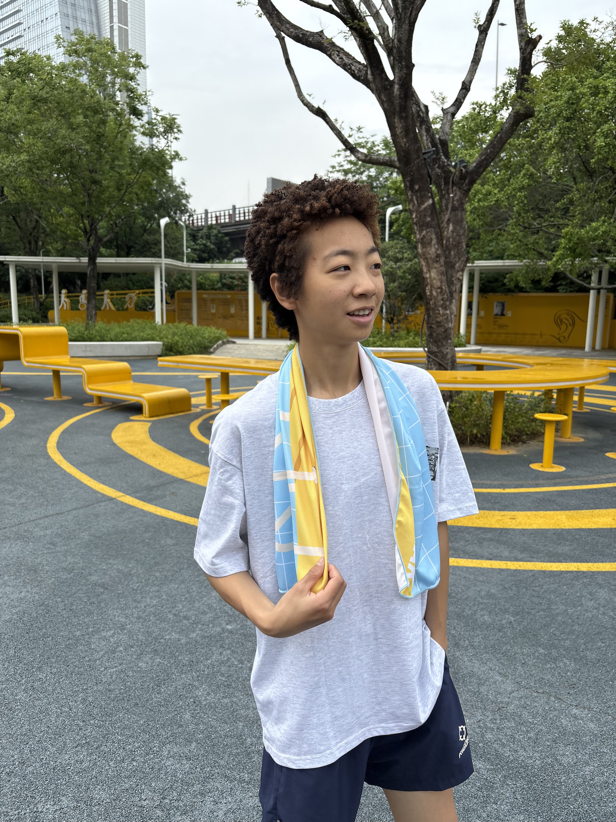 欢迎进入哇圆哇圆哒的穿搭分享频道🔥 172CM|55KG 👔:M 👖:m|👟:39码 嘟嘟嘟 今日份出门运动 热热热🔥💦 带上俺的匹克速干毛巾 是夏天的配色耶 一眼 被颜值吸引🤩 湿上水 挂在脖子上 凉感拉满~