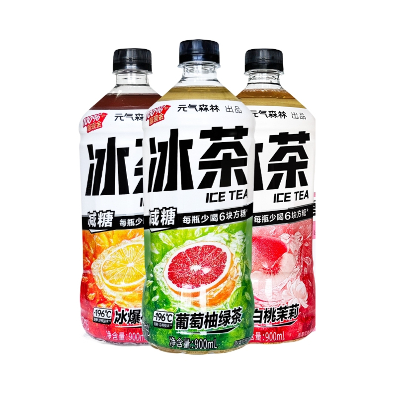 夏天喝冰茶,真的太快乐啦!元气森林冰茶新出900ml大瓶装,超适合夏天吨吨吨! 🍋冰爆柠檬:经典冰茶味升级,茶香醇厚,柠檬爆汁感十足,全家都爱。 🍑白桃茉莉:白桃果香碰上茉莉花香,一口就爱上,清新不腻。 🍊葡萄柚绿茶:酸甜葡萄柚与清新绿茶融合,清爽解腻。 重点是,比普通冰红茶每瓶少6块方糖,好喝还没负担~现在入手超划算,快冲!