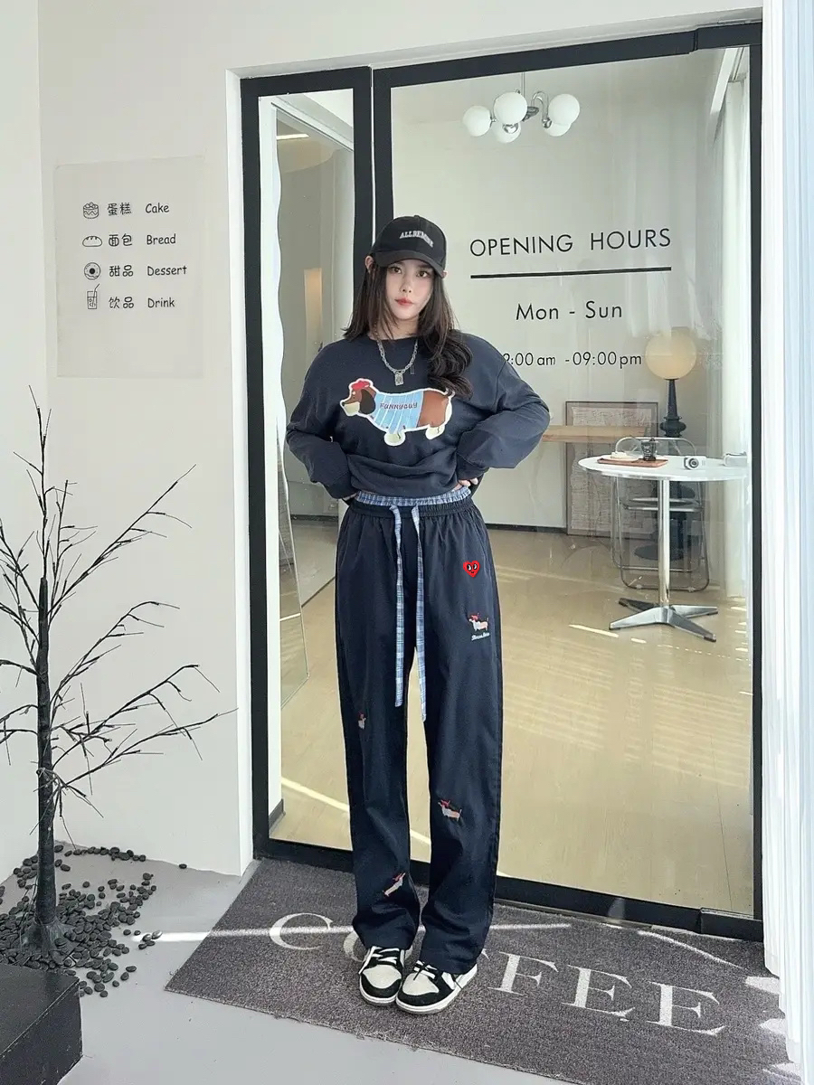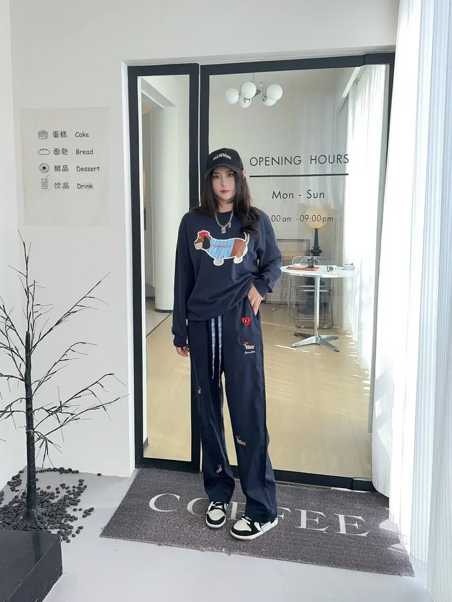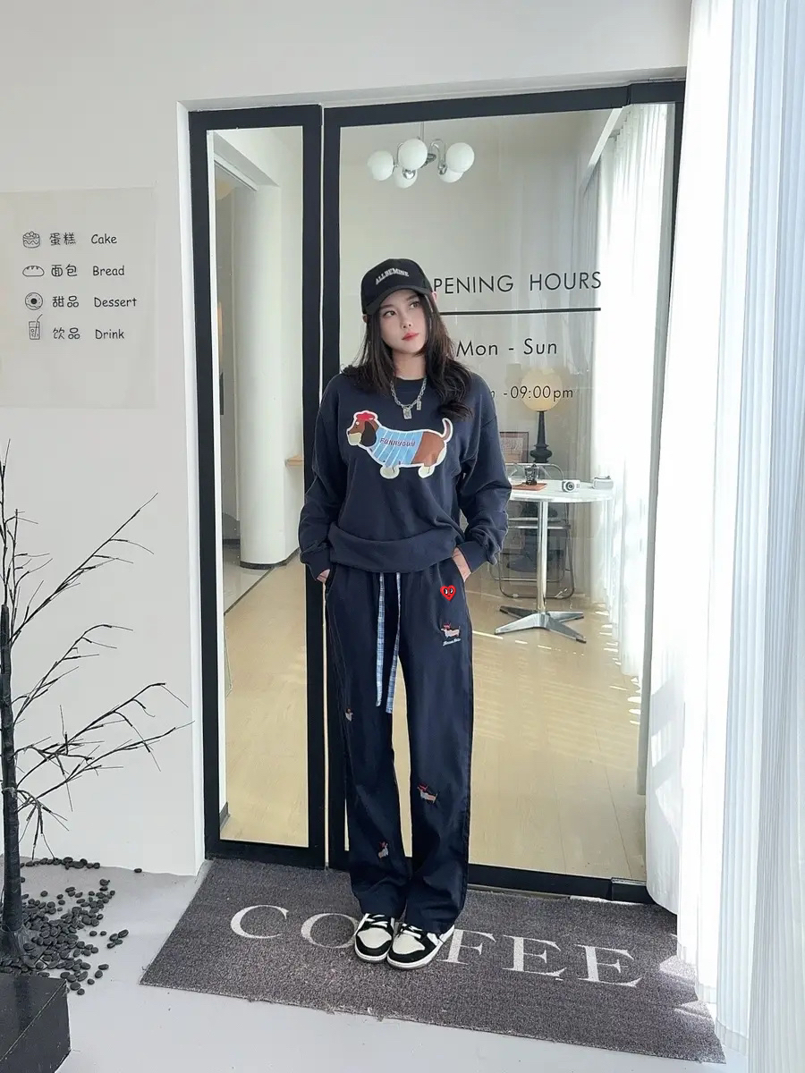 春秋搭卫衣,夏天配短袖,这条裤子太耐穿了!面料厚度适中,直筒设计永不过时。小狗印花越看越可爱,搭配板鞋超青春。拍照自带日系滤镜,闭眼冲!