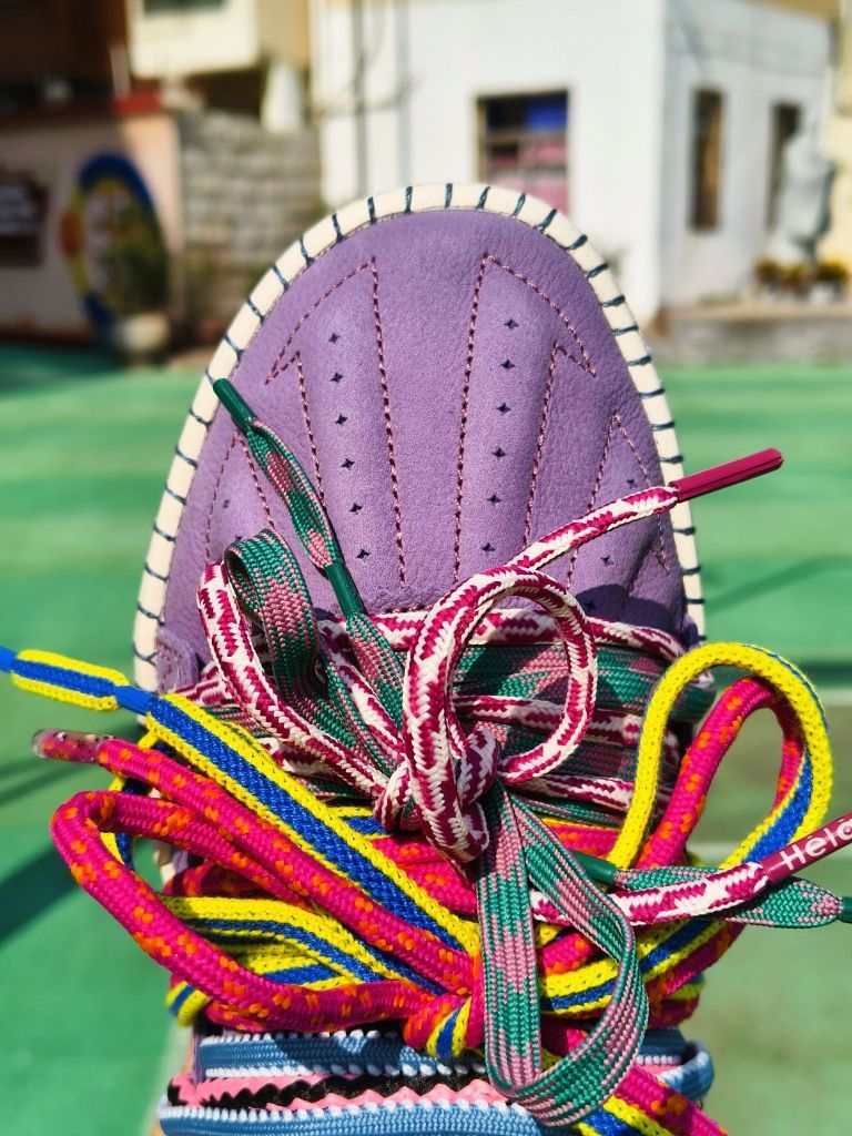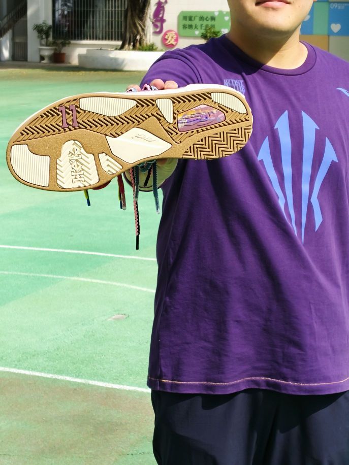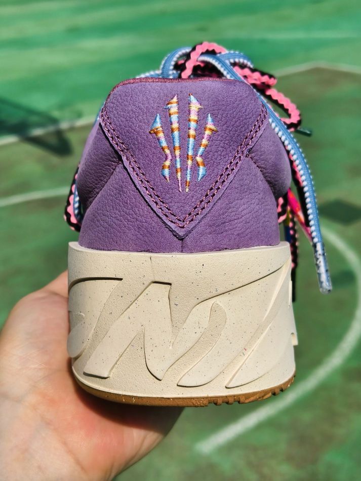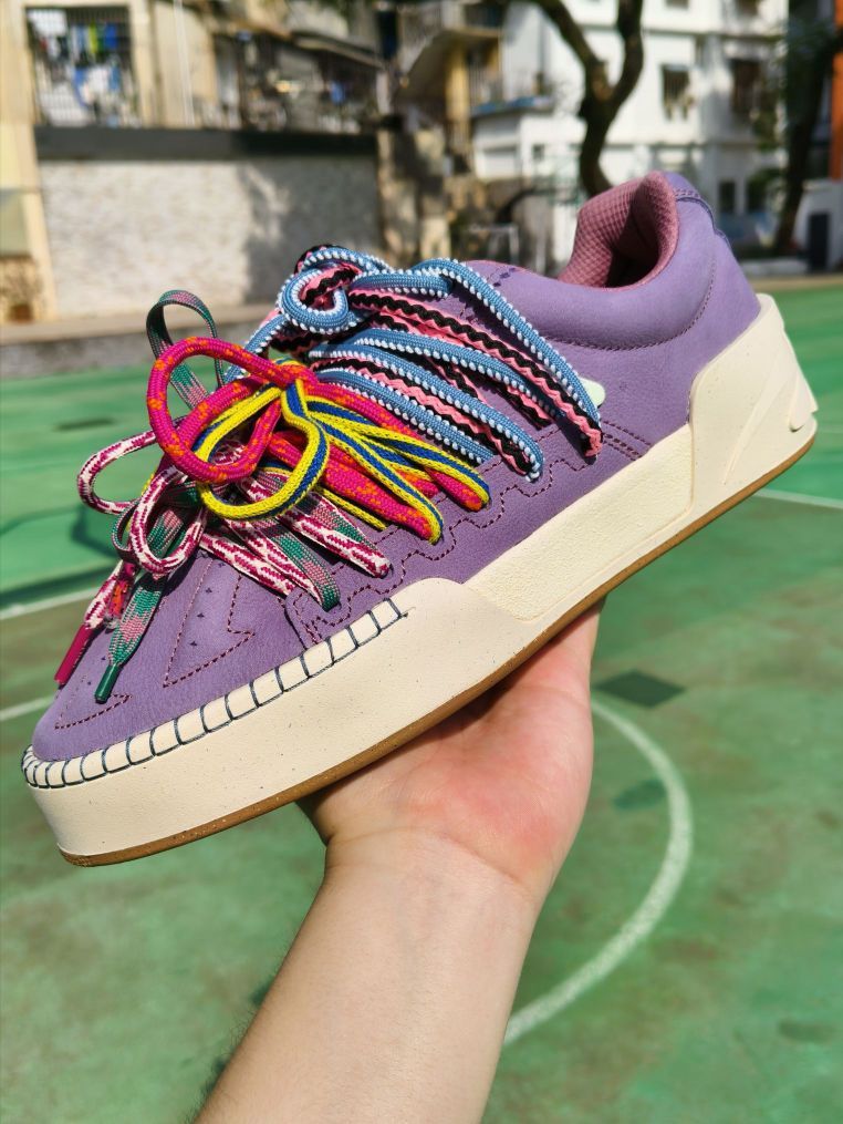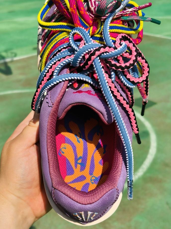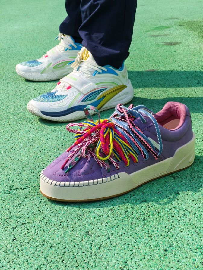 球场艺术家配色可以算是欧文签约安踏系列以来,热度蛮高的一个配色了。一代和二代的首发配色都是它,足以见得“球场艺术家”配色之于欧文的重要性 如今这个配色也来到了欧文板鞋系列,配色设计上与二代的球场艺术家相似,同样的浅紫色色系,已经附赠了kai2上独有的毛绒鞋带,这一款自身也带有比较花哨的原装多色鞋带,可谓造型丰富。 这华丽的配色,作为情侣穿搭鞋也是相当合 适,情侣日常出街回头率拉满