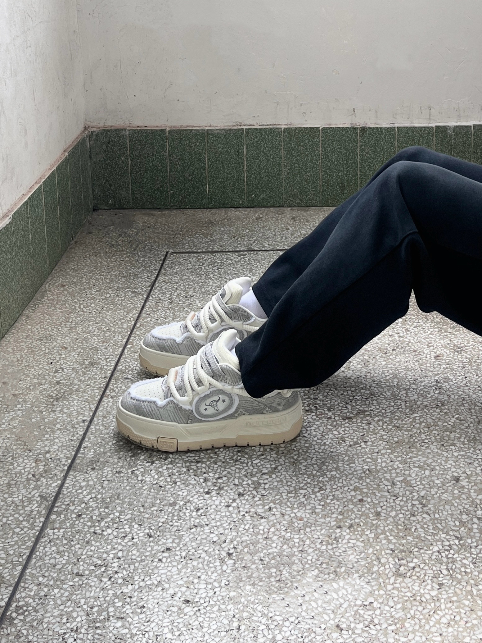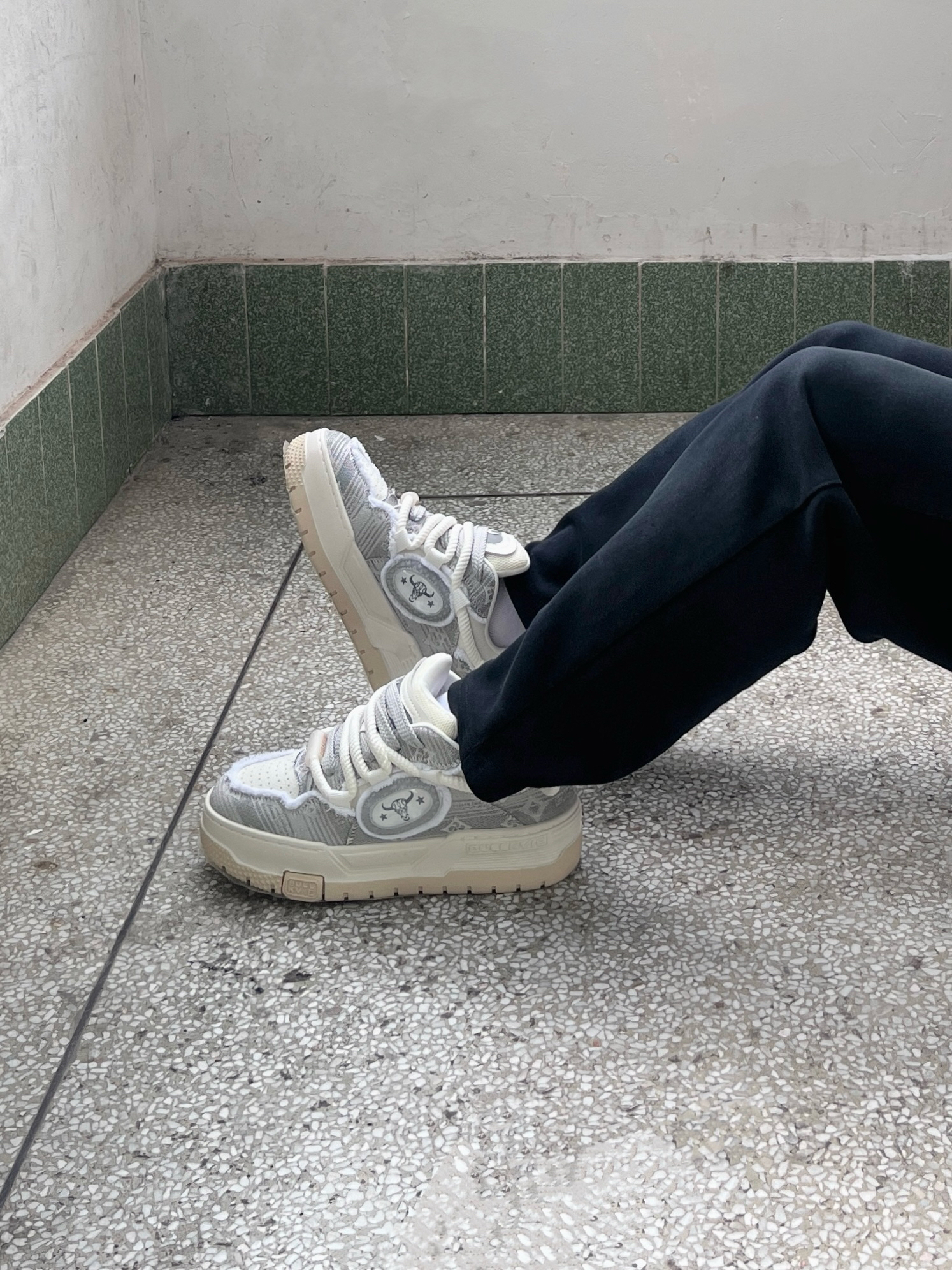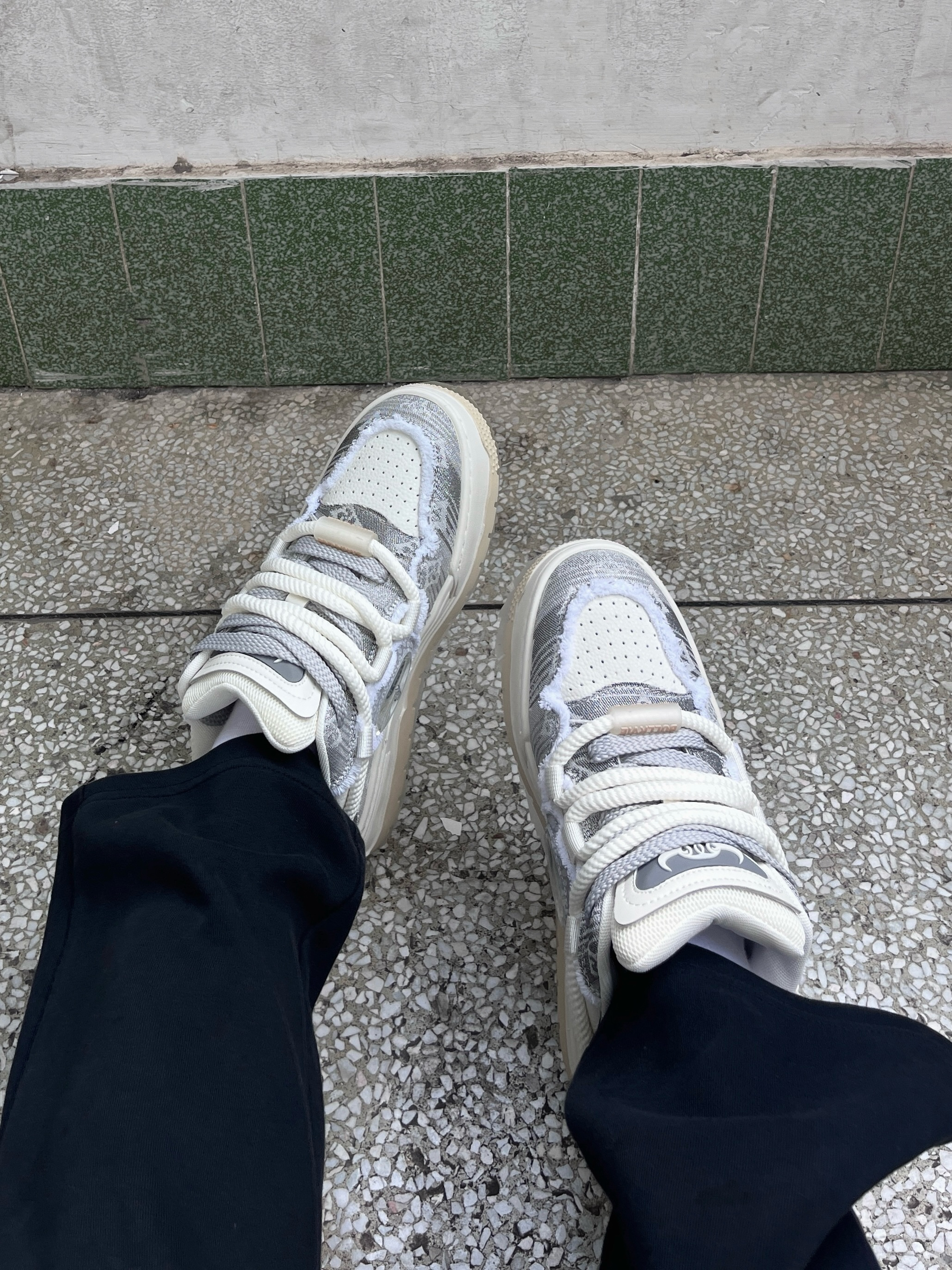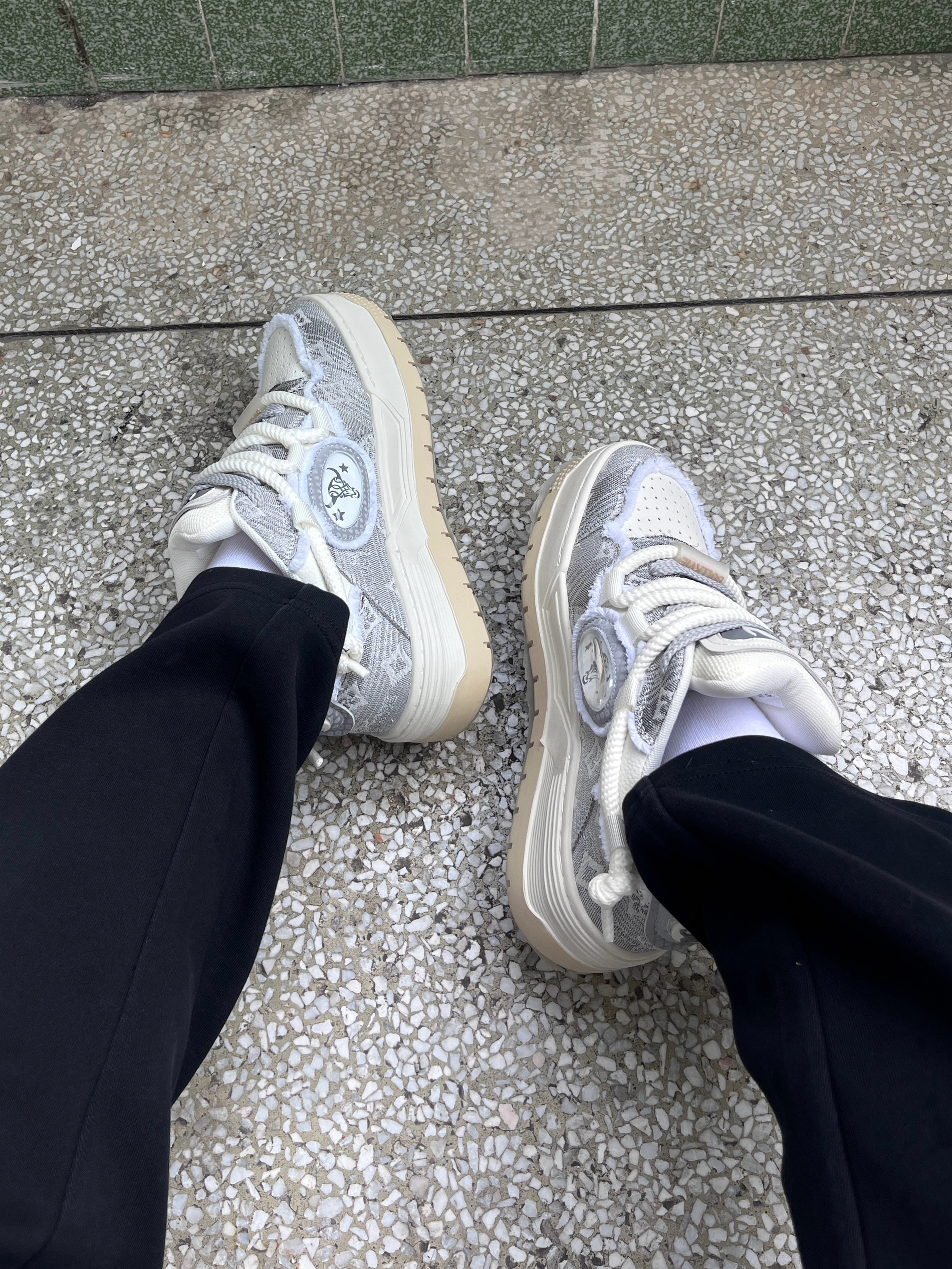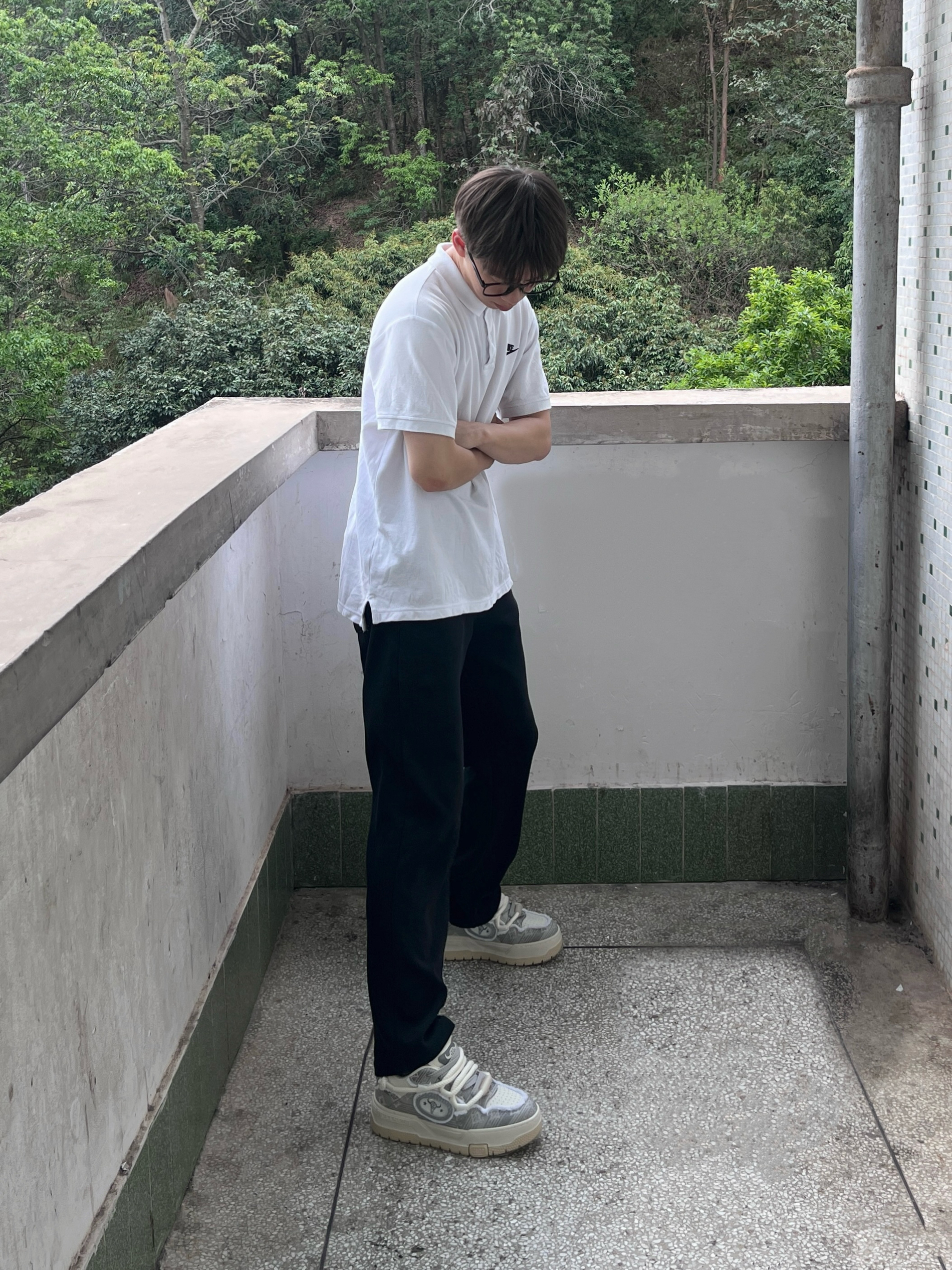 今日份穿搭分享look👀 白色经典Polo衫搭配黑色休闲裤 鞋子是 公牛动感BULLKVIE 家的白灰色休闲板鞋👟 颜值潮酷时尚 采用牛剖层材质🔥 脚感舒适舒适透气 还有防滑耐磨效果 一套搭配下来 夏日出街百搭又好看