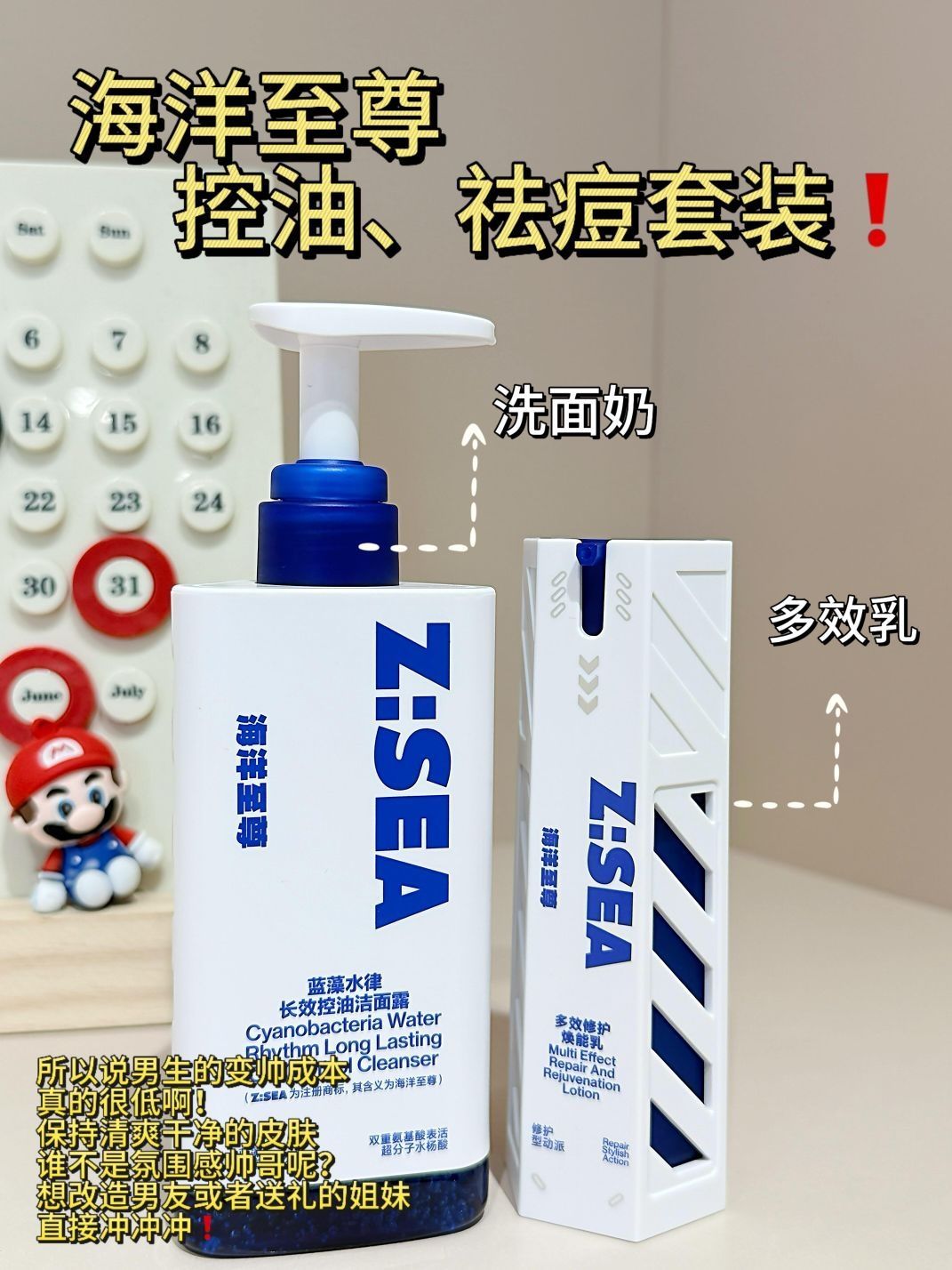 本篇笔记关联了【男士专用】海洋至尊 三棱镜氨基酸洁面乳 保湿控油祛痘长效清洁黑头双效合一 深层清洁、【男士专用】海洋至尊 蓝藻水律护肤套装【乳+洁面】长效控油祛粉刺黑头祛痘淡印清洁毛孔不紧绷 多效全能乳60g+洁面露150g等商品,为用户提供真实的使用体验和购买参考。