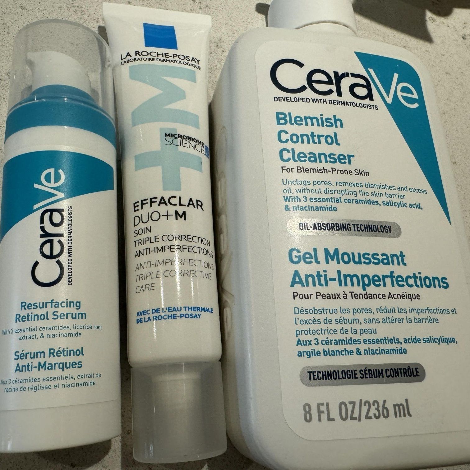 家有17岁的男孩,最近半年痘痘猖獗,可惜他没有继承我和他爸爸青春期基本不长痘的好基因...英国可以去看皮肤科医生,但配的药膏有的含有激素或者就是常规给青春期孩子用的药膏acnecid gel用了以后是可以消痘,但是会留痘印,很深那种!好多药又含有激素,容易皮肤屏障受损, 所以开始研究了安全的祛痘的药妆产品! 首先图3️⃣理肤泉三酸精华非常有效,很神奇的一款产品!三酸合一温和的配方,17岁的孩子用...