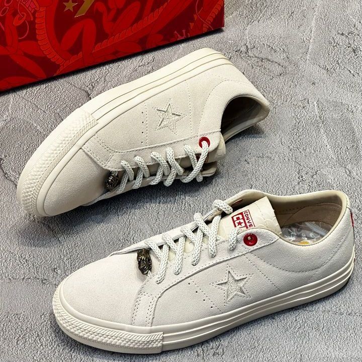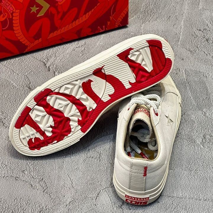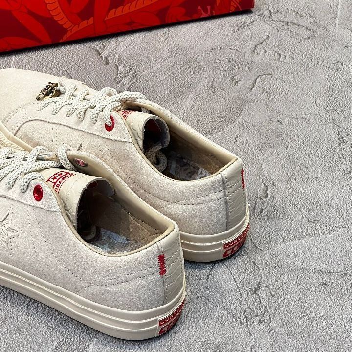 匡威年限定来咯! 匡威onestar终于来新款啦,还是龙年限定的,红色点缀的敲到好处,还转赠送一副红鞋带,节日搭配上很有喜庆氛围感,有没有心动的~