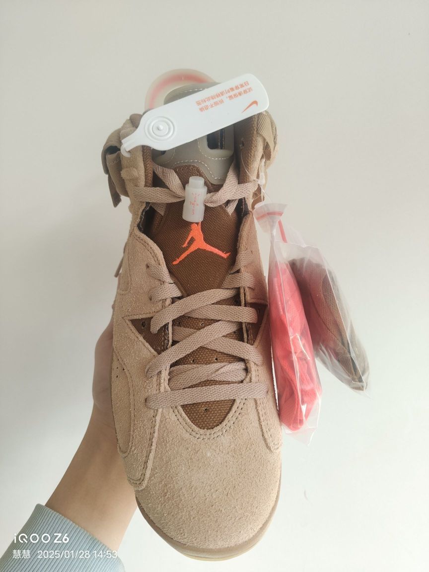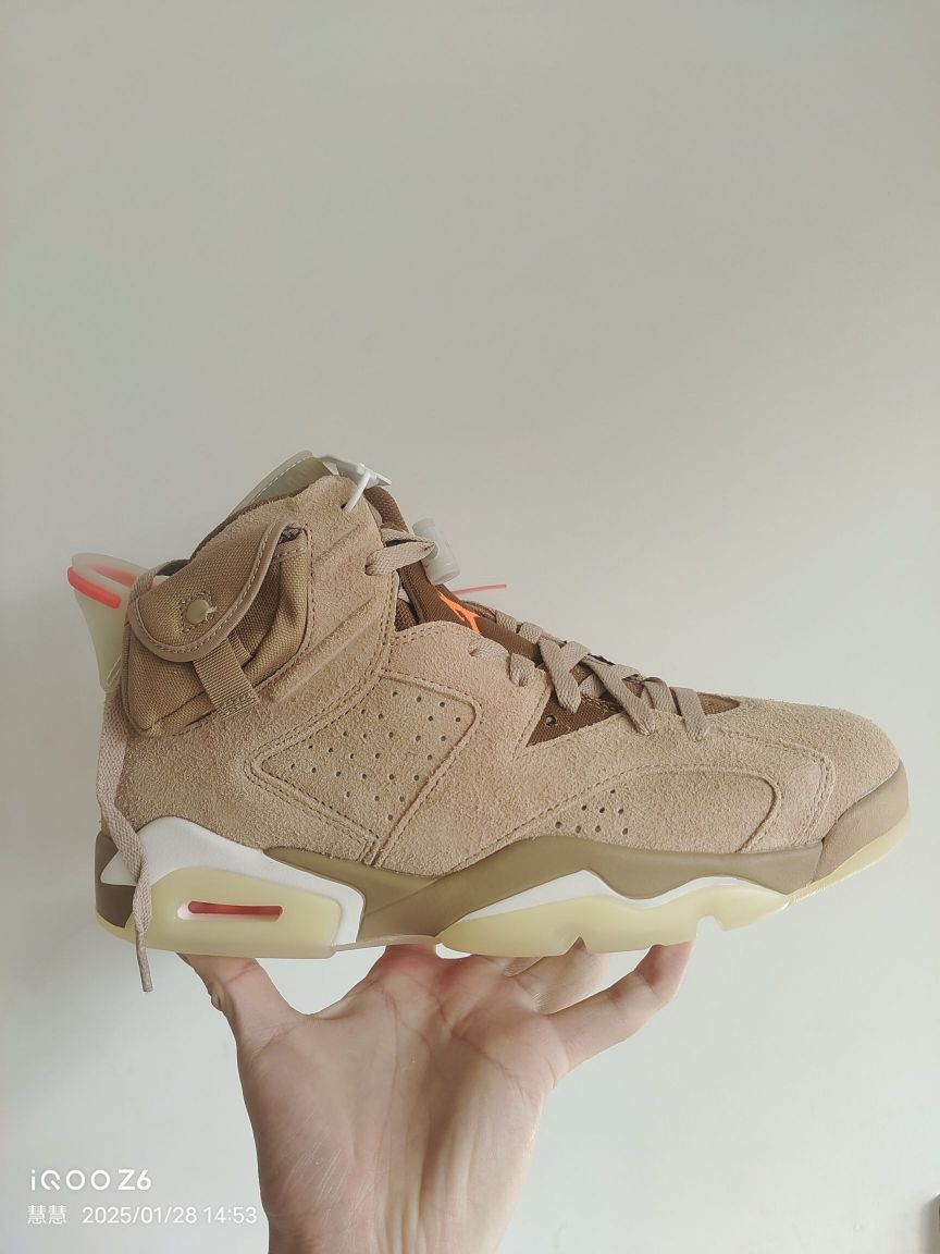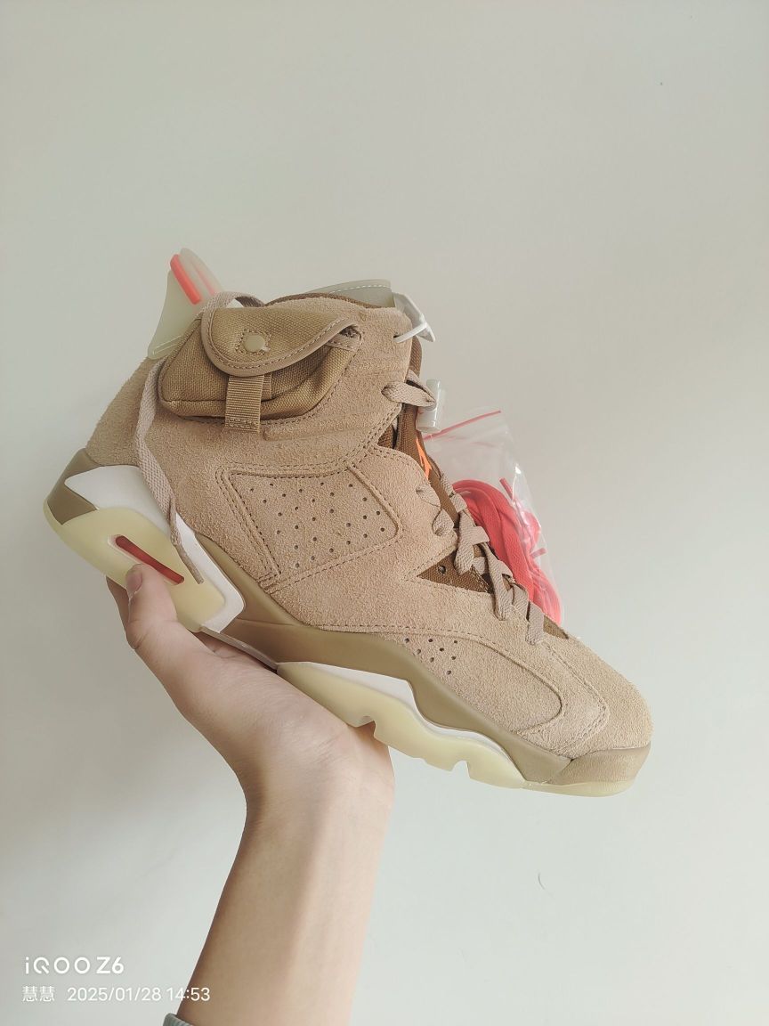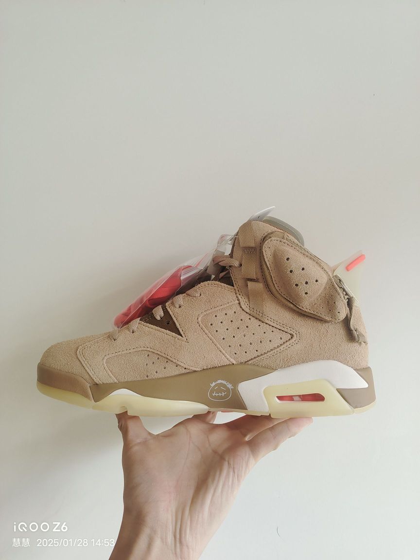 本篇笔记关联了Air Jordan 6 运动休闲鞋 复古耐磨防滑缓震支撑合成革 Travis Scott联名/卡其等商品,为用户提供真实的使用体验和购买参考。