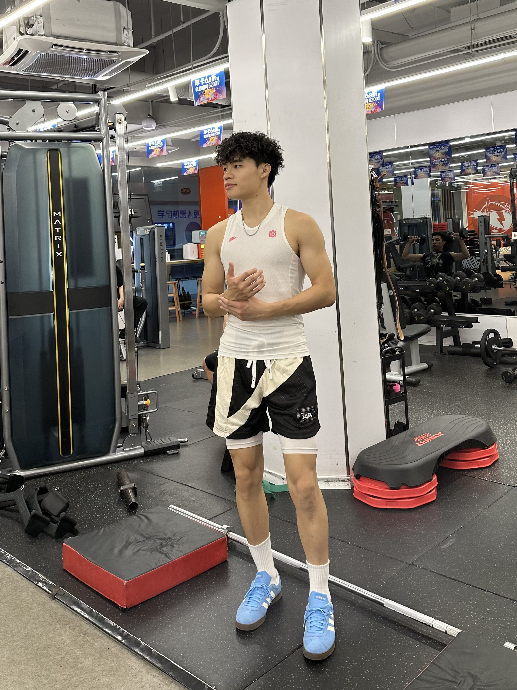身高|体重:180 70 🧍♂️ 穿搭风格:美式运动 👔 上衣:有志者 👖 下装:维动 👟 鞋子:Adidas