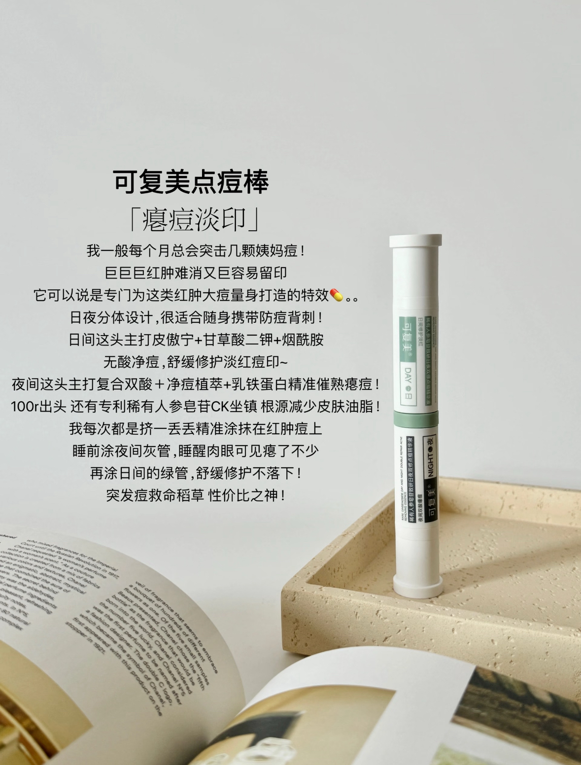 总结几支使用率&效率双高的祛痘搭子: 可复美点痘棒「瘪痘淡印」 双管设计,日夜精准区分的性价比之神~不挑肤质,很适合容易长红肿大痘痘的姐妹! • hfp果酸水「平滑嫩肤」很适合容易长闭口的姐妹! 湿敷平滑细腻肌肤很有效! •修丽可色修精华「舒缓退红」很适合痘期伴随敏敏泛红的姐妹! 舒缓退红小能手! 大水滴袪痘精华「急救催熟」 闷着发不出来的硬痘 用它点涂过夜很快就能够催熟!! “专利稀有人参皂苷C...