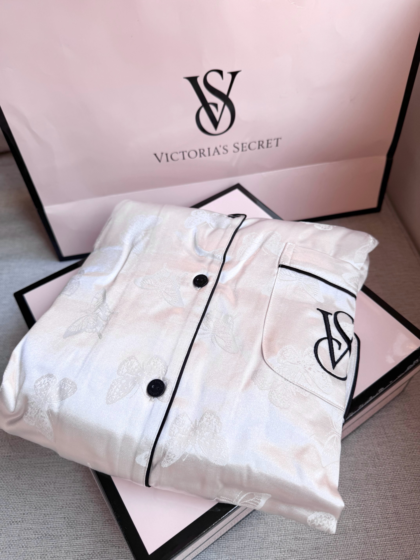 本篇笔记关联了【田曦薇同款】Victoria's Secret/维多利亚的秘密 可外穿白蝴蝶印花提花缎面月光绸中腰小翻领睡衣套装 女装 11245461 蝴蝶印花/浅粉等商品,为用户提供真实的使用体验和购买参考。