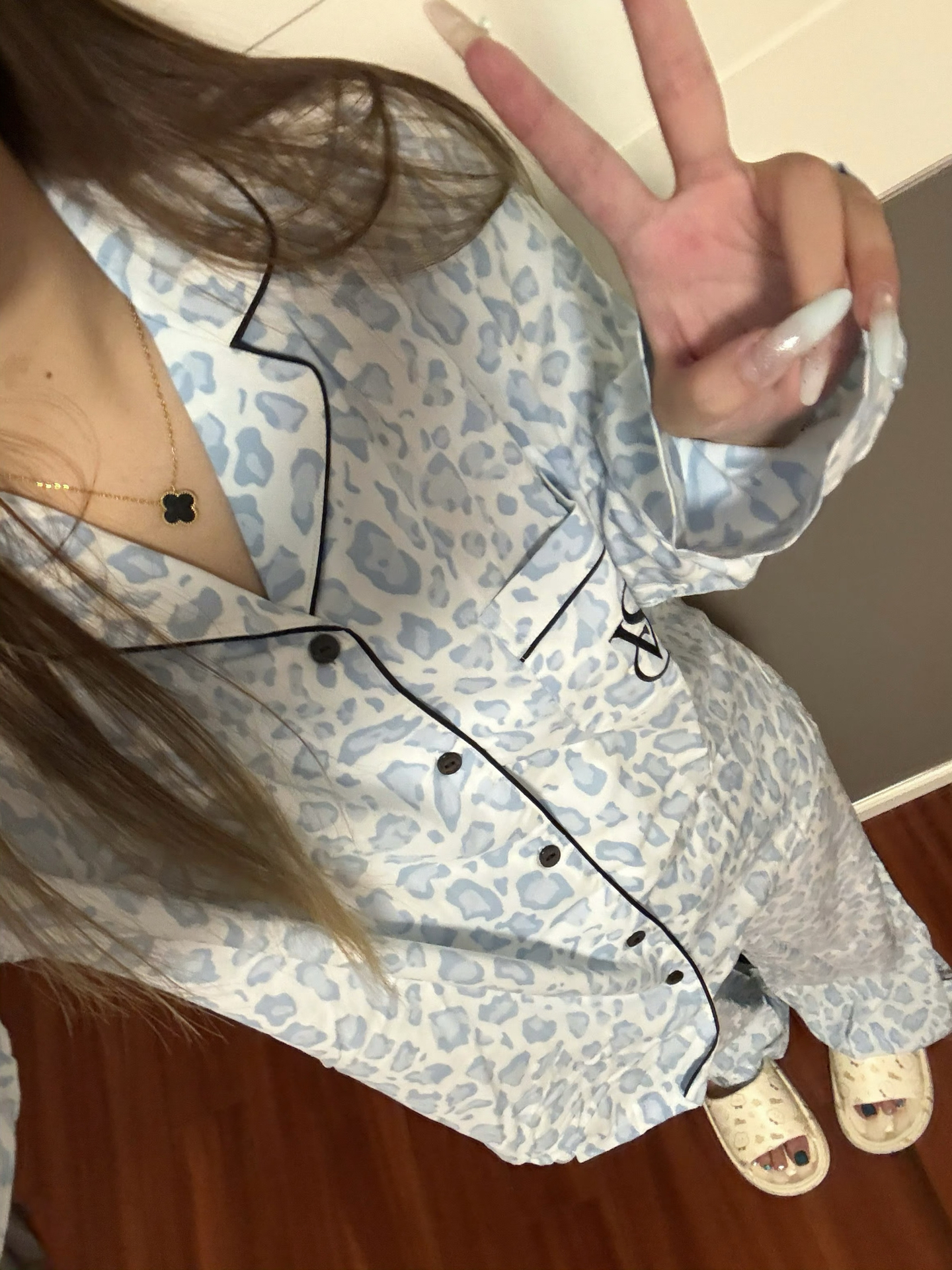 去年爆火的小蝴蝶,今年春天终于补货! 到手还是月光绸的正常面料,印花别具心意,小蝴蝶迎光很漂亮。据说蝴蝶招财相,这个不清楚但肯定招桃花,穿上这么漂亮的睡衣,好抬气质!