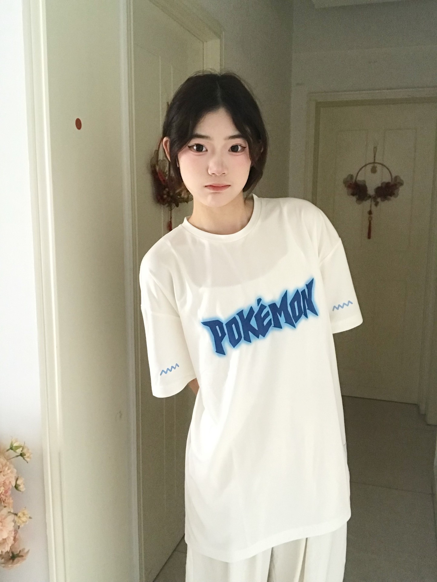这款是宝可梦联名的短袖 正面是英文字母 简单却不单调 背面是喷火龙的图案 圆领不勒脖 显瘦 版型宽松 质感好 上身舒服 透气不闷汗 白色是最百搭的颜色 日常通勤都可以穿 不用担心搭配问题 随意搭都好看 不撞款 性价比高,男女都可以穿👍 图片来源于网络,侵删