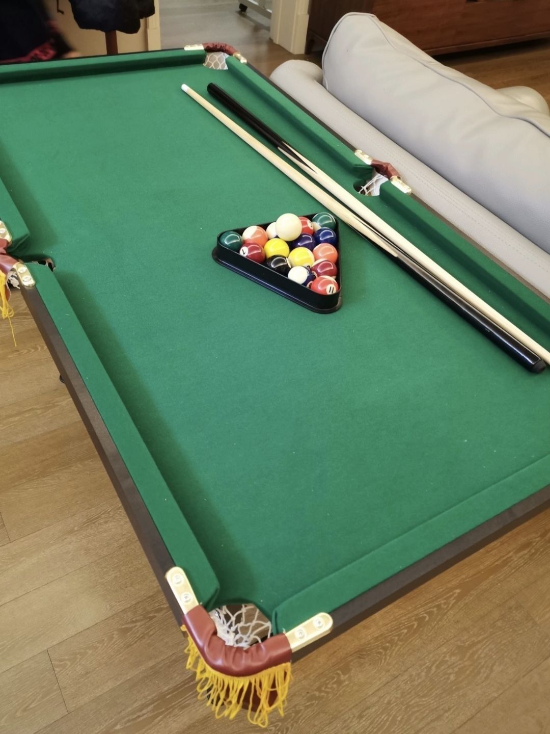 💰搞定专业级球桌!实木结构稳如老狗,200斤兄弟压边打球都不带晃,性价比高到让球房老板连夜改价目表💸 🛠️防潮设计离谱实用!南方梅雨季连打一周都没变形,台呢绒毛密实走球顺滑。自带六个防滑脚垫,瓷砖地上都能纹丝不动,这才是真正的「物理外挂」🛡️ 🎯配套齐全到犯规!送两根通用球杆+全套彩球,开箱就能直接开打。 想在家随时练杆法?这台大概是「让小区大爷都羡慕」的性价比之王。(温馨提示:小心邻居天天...