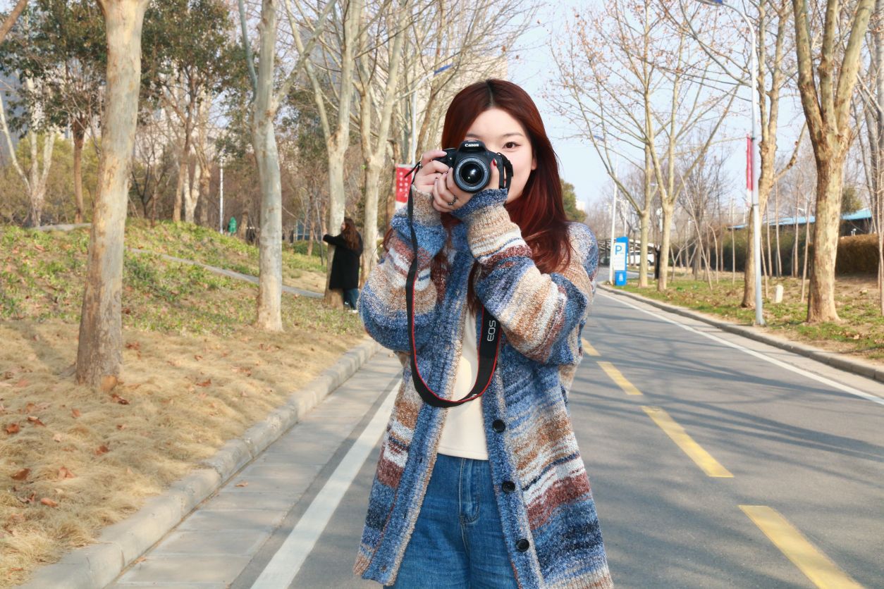 这件蓝棕格纹毛衣简直是我的心头爱!搭着牛仔裤,佳能镜头随便按两张都超有氛围感✨。抬手比耶是元气少女,漫步林荫道自带文艺滤镜,草地前慵懒遮阳秒变松弛感美人,在教室随手一坐都温柔到骨子里~谁懂啊!有它出片率直接拉满,闭眼穿都能拿捏朋友圈C位!