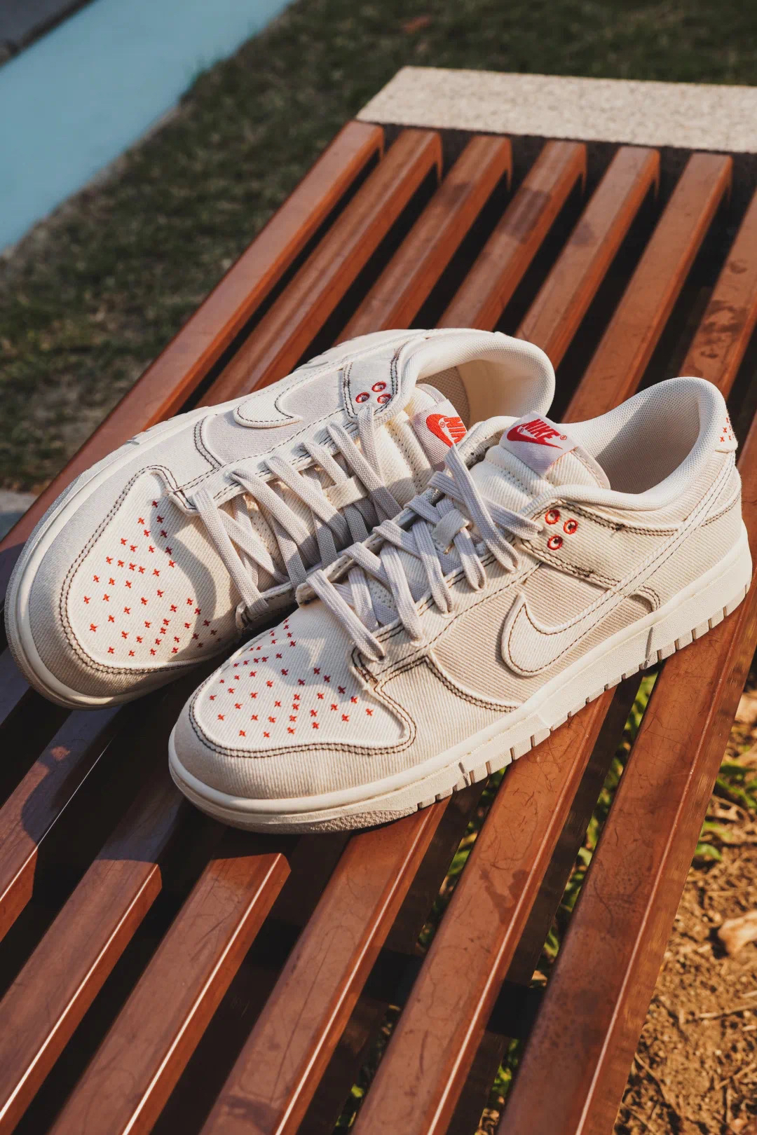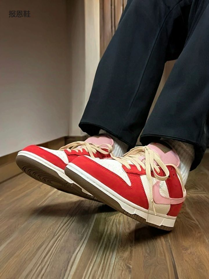今天就给大家分享这双Nike Dunk Low “Sail and Sport Red”女款米红粉板鞋😍。 它米白与玫红温柔碰撞,鞋面麂皮质感细腻。轻便不磨脚,搭配超多样。 配牛仔裤、运动短裤、碎花裙都超合适,还是“万能搭子”。 就是麂皮要小心打理哦~大家平时喜欢怎么搭这双鞋呢?
