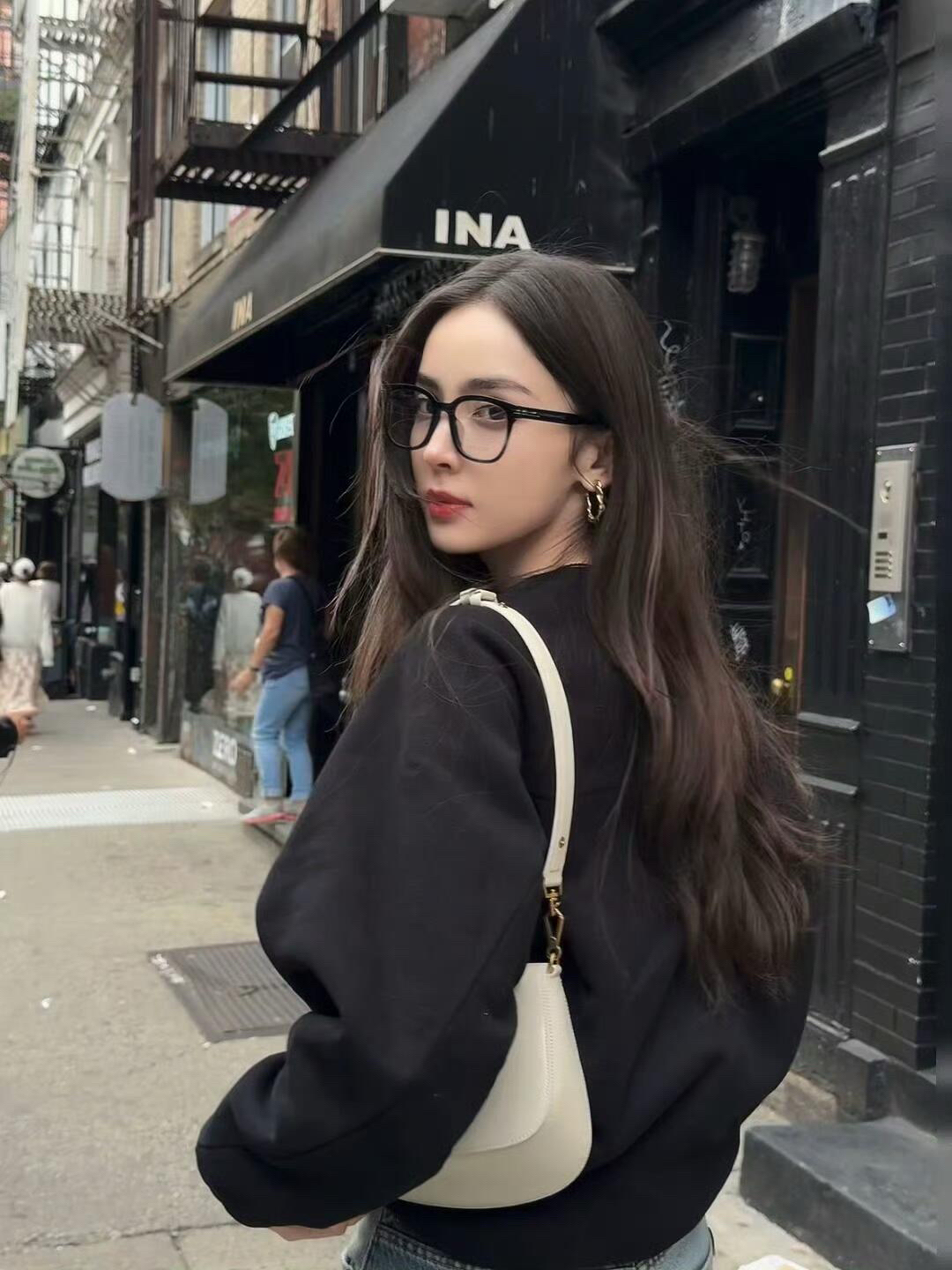 谁能想得到这是随手拍的呀! 穿搭解析👀 眼镜|BOLON暴龙 素颜黑框眼镜 上衣|SAINT LAURENT圣罗兰 FW22 纯色圆领长袖卫衣 包包|SAINT LAURENT圣罗兰 YSL Nolan 金色金属字母 Logo标志小牛皮手提单肩包