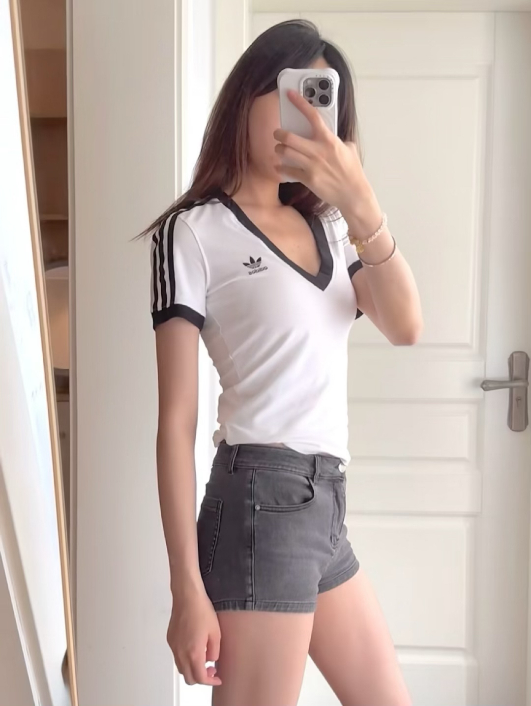 阿迪你也是v领上了...掐腰显瘦一绝啊!! 百搭不挑人,简直不要太显瘦,谁穿谁是韩女!!