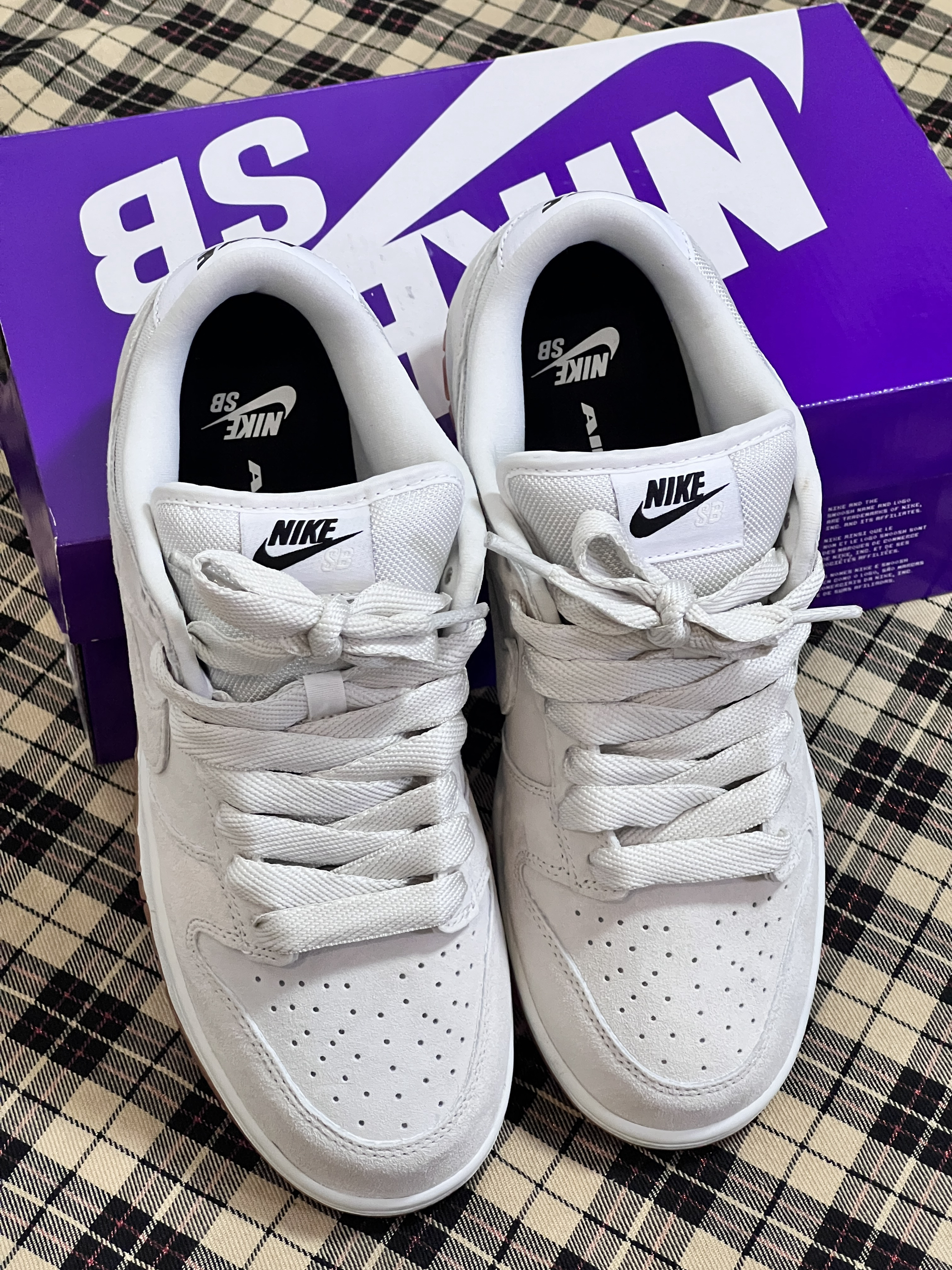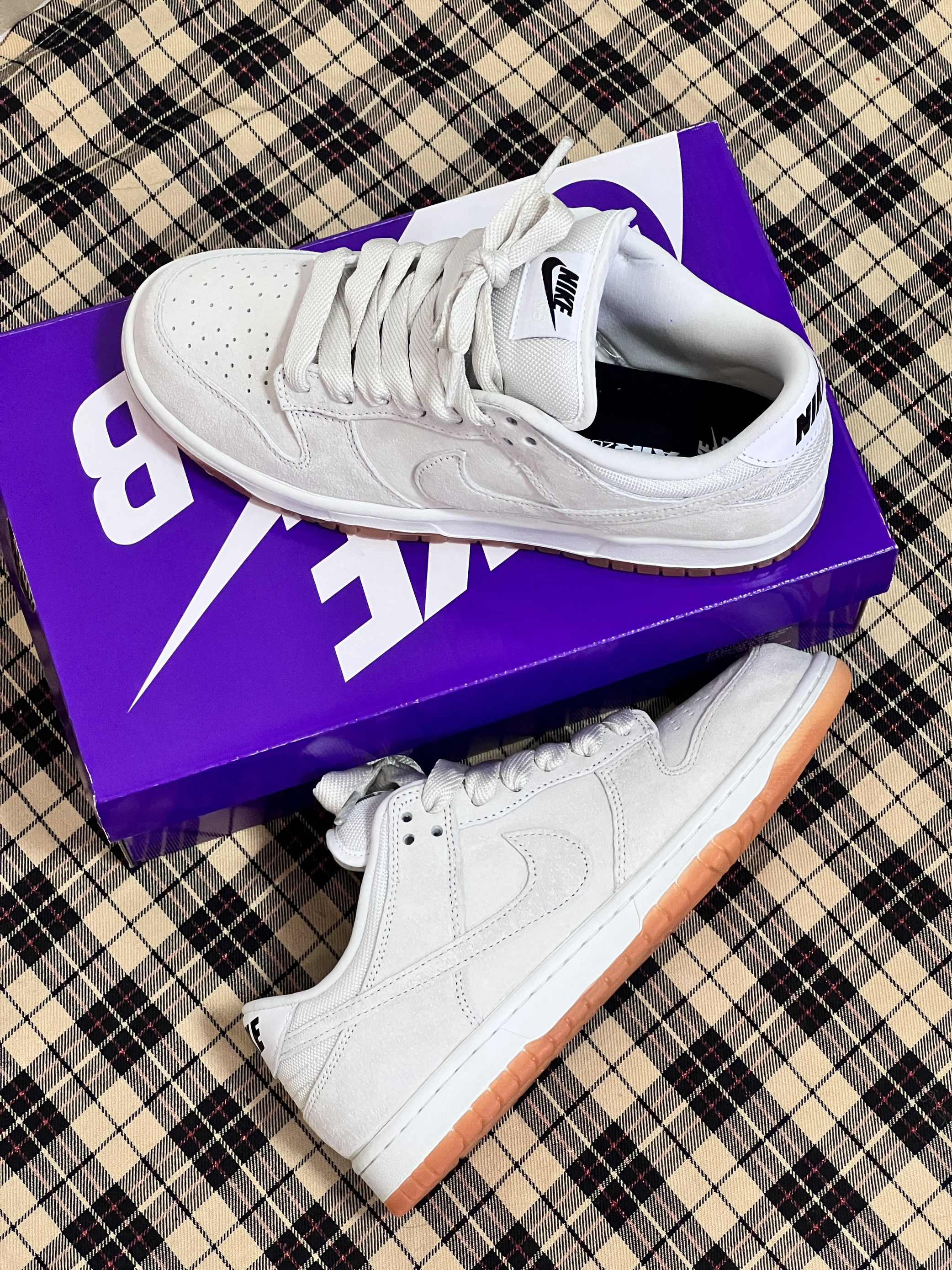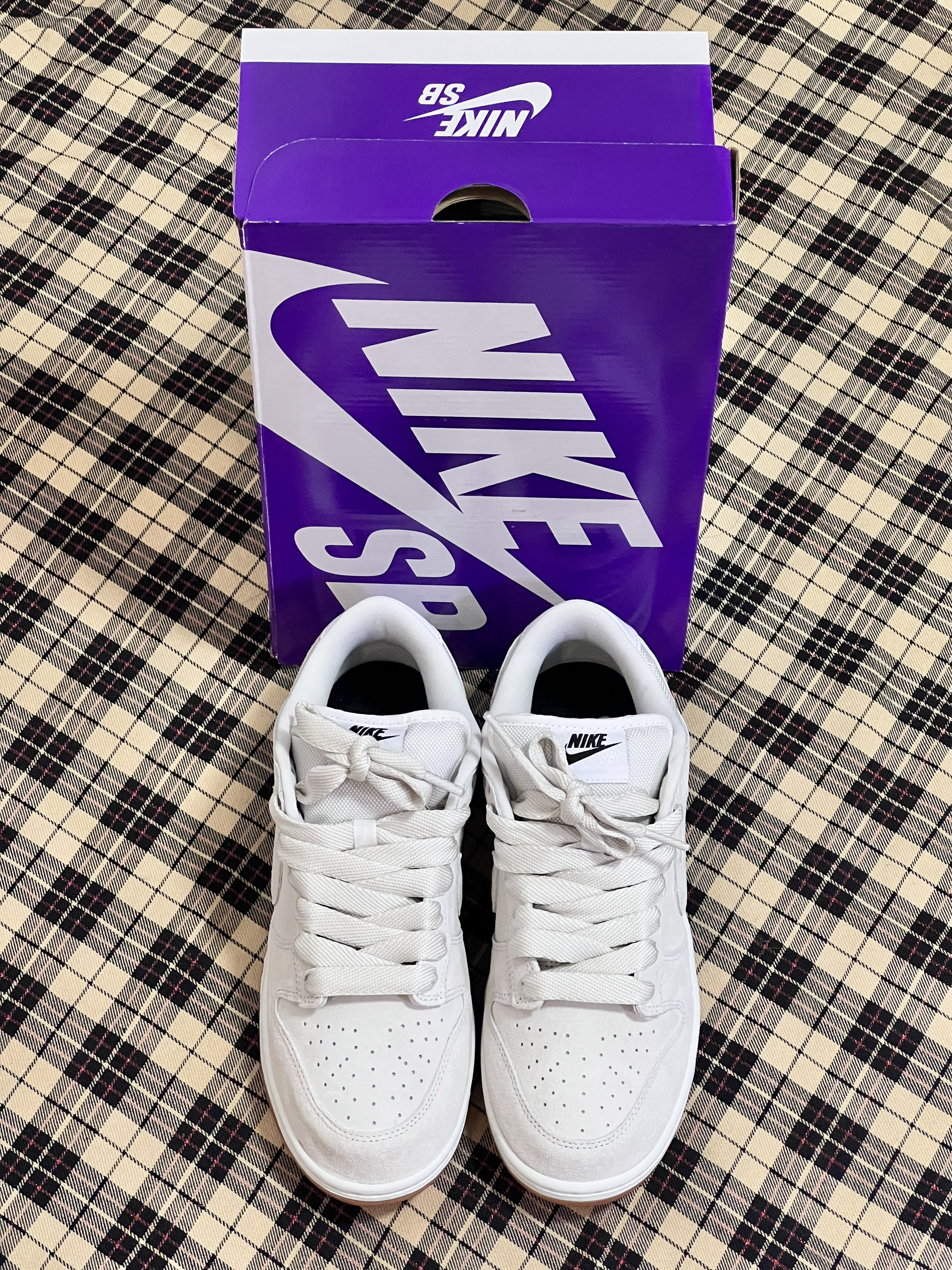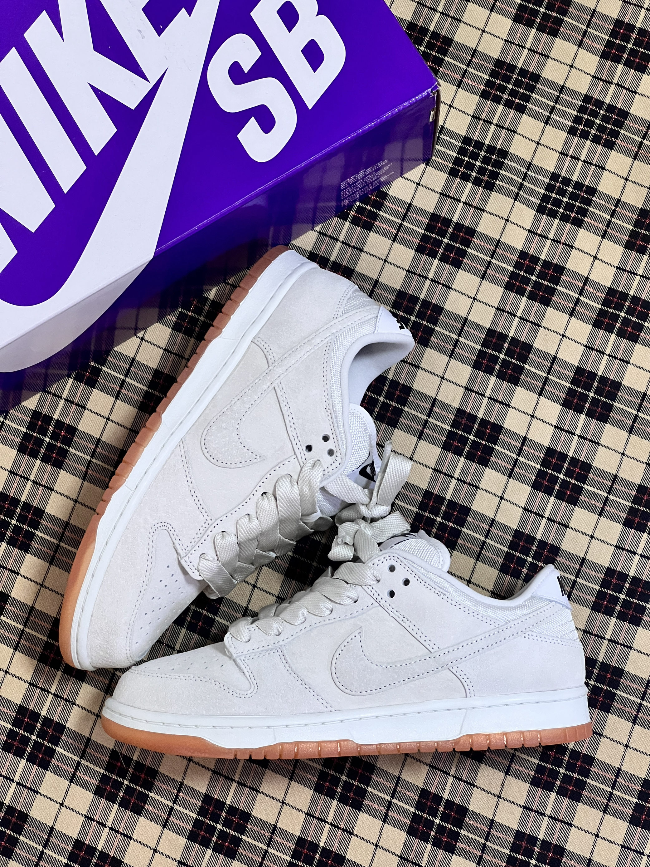 颜色是白灰色的鞋面 整体看上去就很复古百搭‼️ 五一出游我觉得挺不错的 脚感可以 徒步爬山都很不错‼️ 逛街打卡拍照也好看 跟平时的DunkSB还是有区别的‼️ 他是扁的鞋带 平时的DunkSB的鞋带都是圆的‼️ 这双第一眼看上去 不会很亮眼 看着就比较复古吧‼️ 但是就是他是翻毛皮的设计 有可能会掉色‼️ 但是目前的价格还是挺香的 男码7张左右 女码8张左右‼️ 我个人觉得挺好看的‼️你们觉得呢...