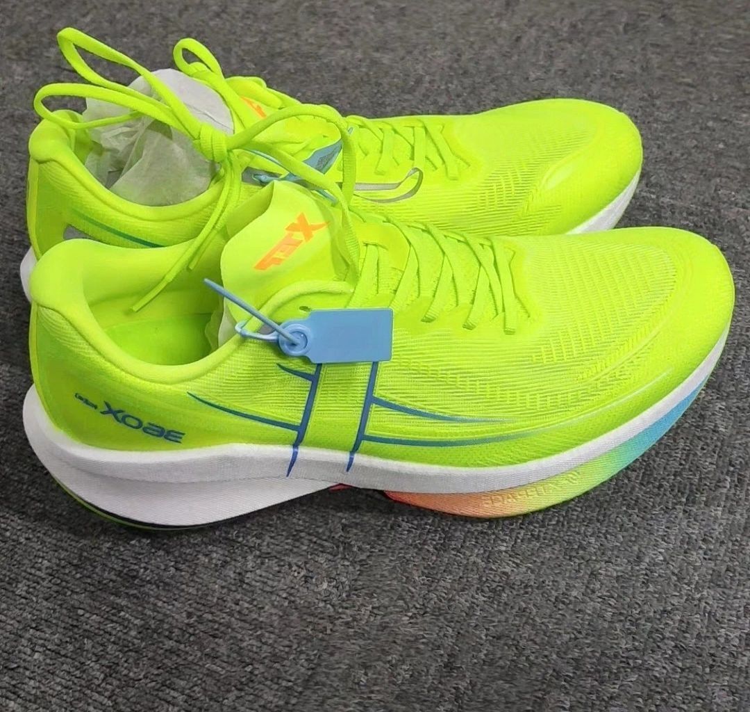 - 6组飞线交叉锁定足弓,宽脚通过「前2孔松+后4孔紧」实现精准适配;后跟港宝硬度达80HA,急停时后跟偏移角度≤2.3°,比普通跑鞋提升50%稳定性