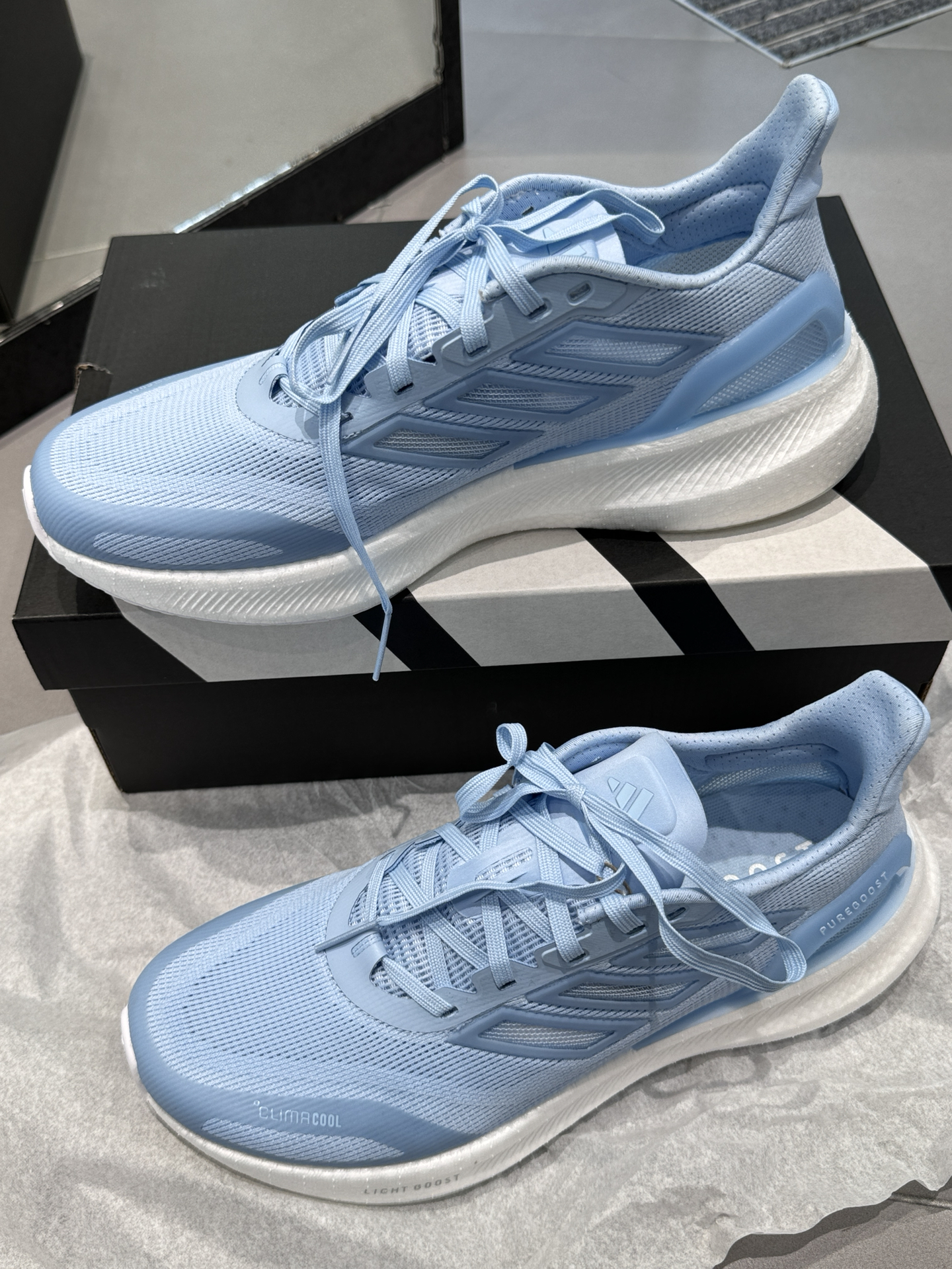 本篇笔记关联了adidas PUREBOOST 5 CLIMACOOL 跑鞋 防滑耐磨舒适透气缓震回弹百搭防水短跑 粉蓝/白色等商品,为用户提供真实的使用体验和购买参考。