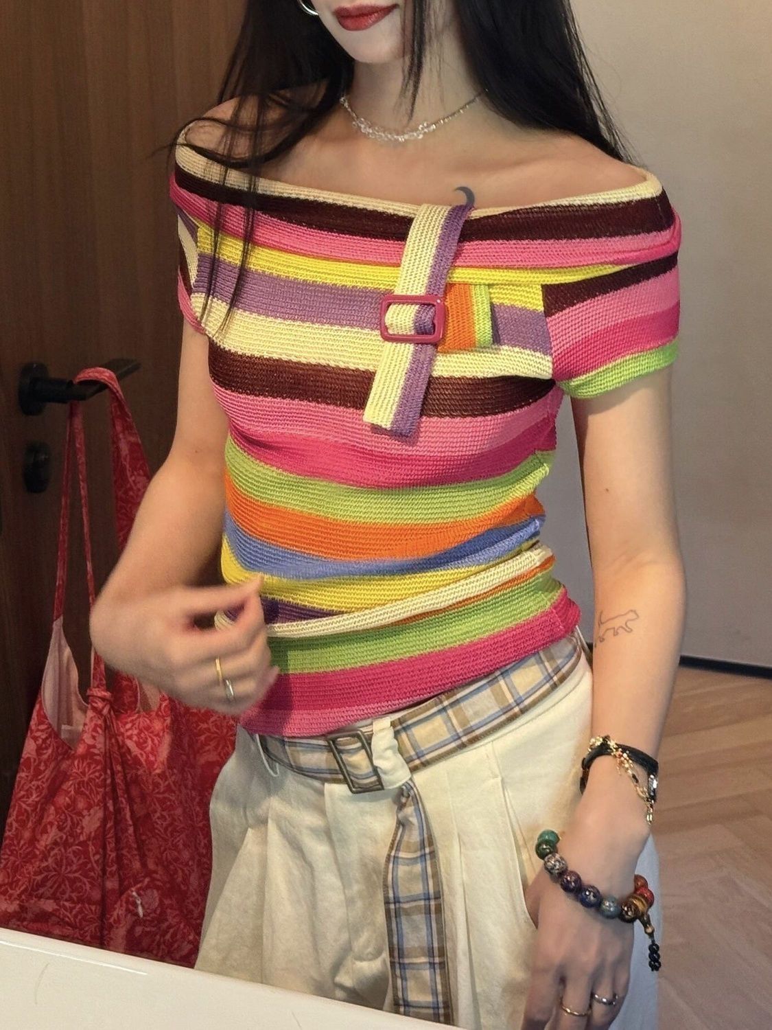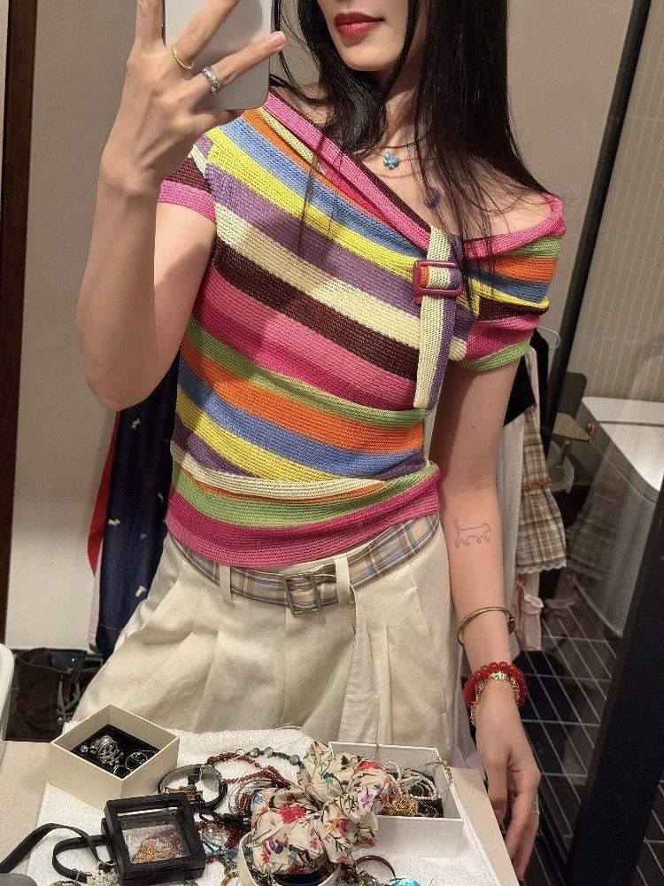 【古着vintage一字肩复古彩色上衣小众设计感T恤半袖别致短袖女ins#令人心动的短袖T恤 #夏日宝】,由用户 沙漠蜻蜓rI8 分享,来自贵州。这是一篇来自识货社区的真实用户分享笔记。