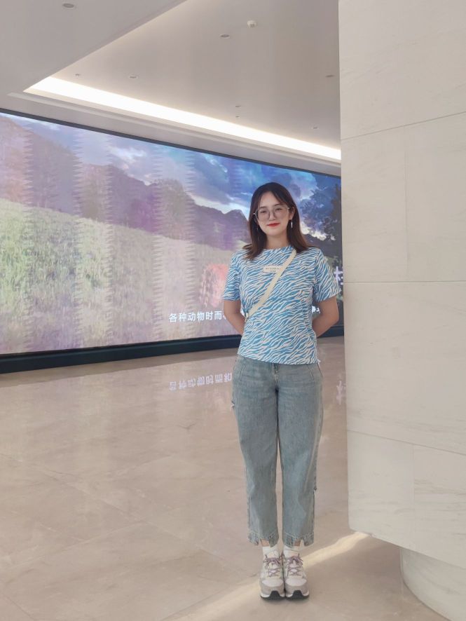 谁说豹纹只能狂野? 这件雾霾蓝豹纹短袖 用低饱和色调化解了动物纹的张扬 搭配浅色高腰牛仔裤 透出清爽的少年感 脚踩白色短袜➕运动鞋 整套look像是海盐汽水般沁凉 完全从夏日人潮中跳脱出来 能把豹纹穿出清新感的是真高手哟 💡 搭配心机 • 搭配白色胸包显得清新率性 • 选择九分裤长露出脚踝更显瘦 这身清凉感穿搭太适合夏日晴天咯 阳光下蓝白配色自带反光板效果 拍照整个人又白又嫩哦~
