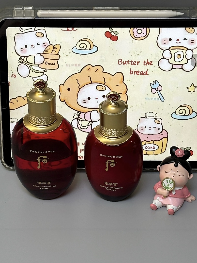 宝子们🥰,有没有和我一样,突然某天发现妈妈脸上悄悄爬上了细纹😢,那一刻真的好心疼。今年母亲节,我就决定送妈妈一份特别的礼物——后津率享礼盒🎁,真的被妈妈夸爆了! 先说说这套礼盒里的东西。津率享爽肤水,质地稍微有点稠,但满满的都是营养。倒在化妆棉上轻轻擦拭,感觉肌肤像在大口“喝水”,能深层滋润肌肤,给后续护肤打好基础💦。 乳液质地轻盈,不过滋润度可一点都不含糊。涂在脸上轻轻按摩,很快就被吸收了,...