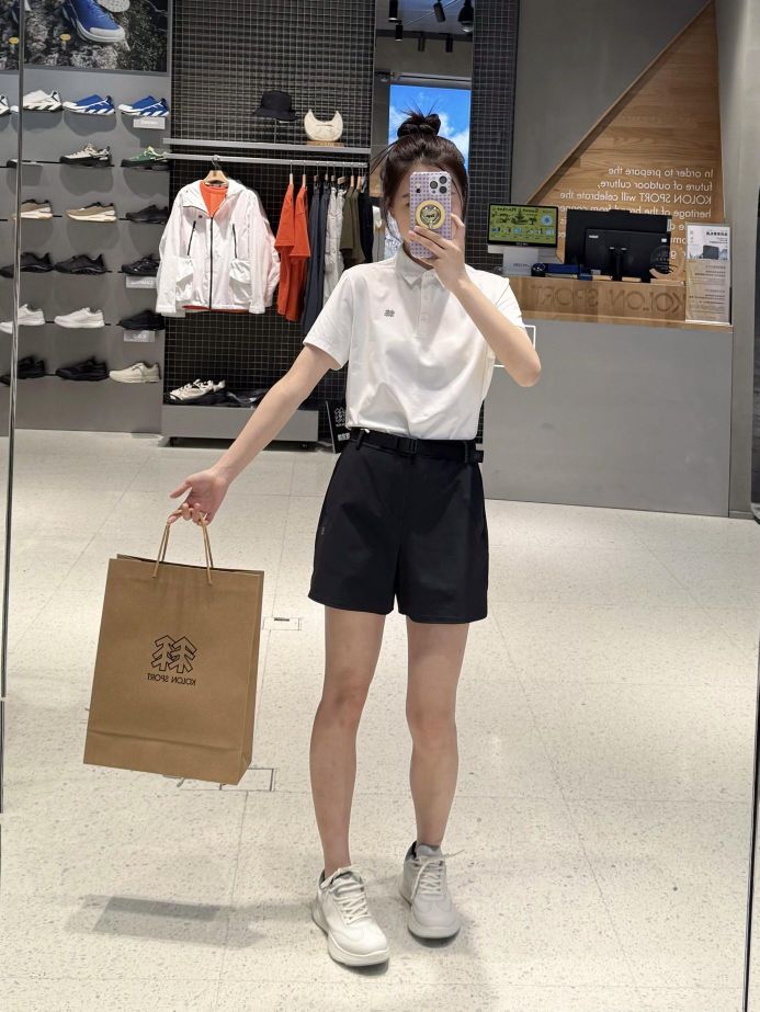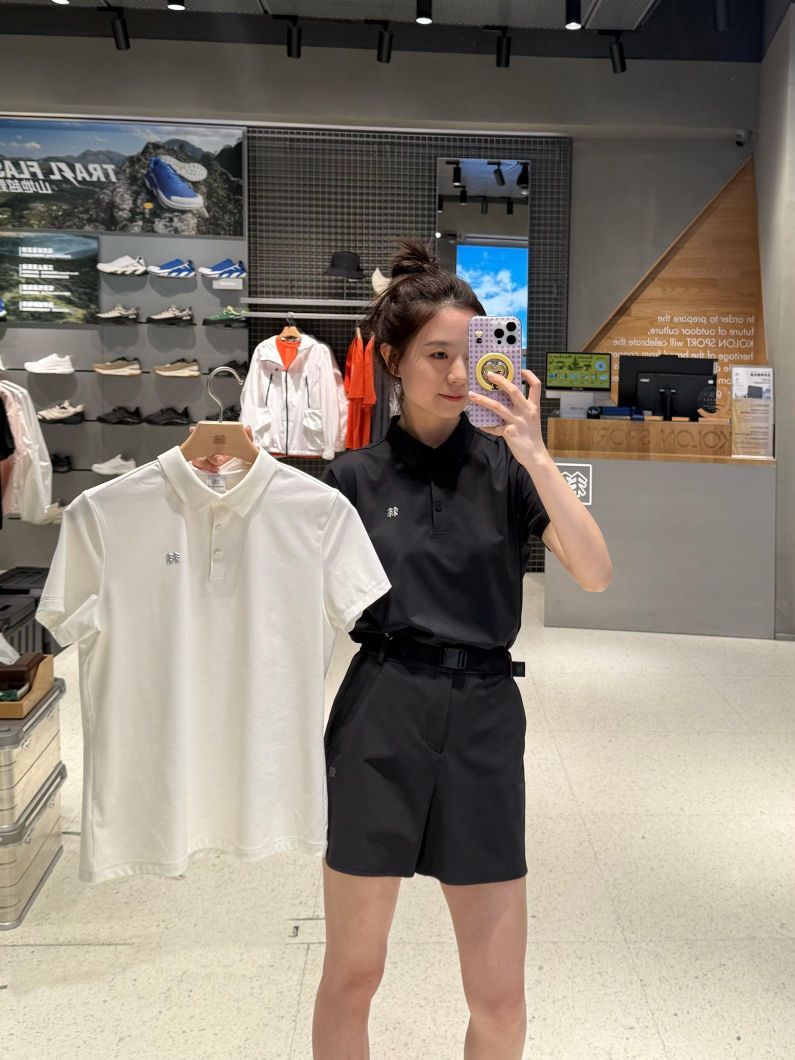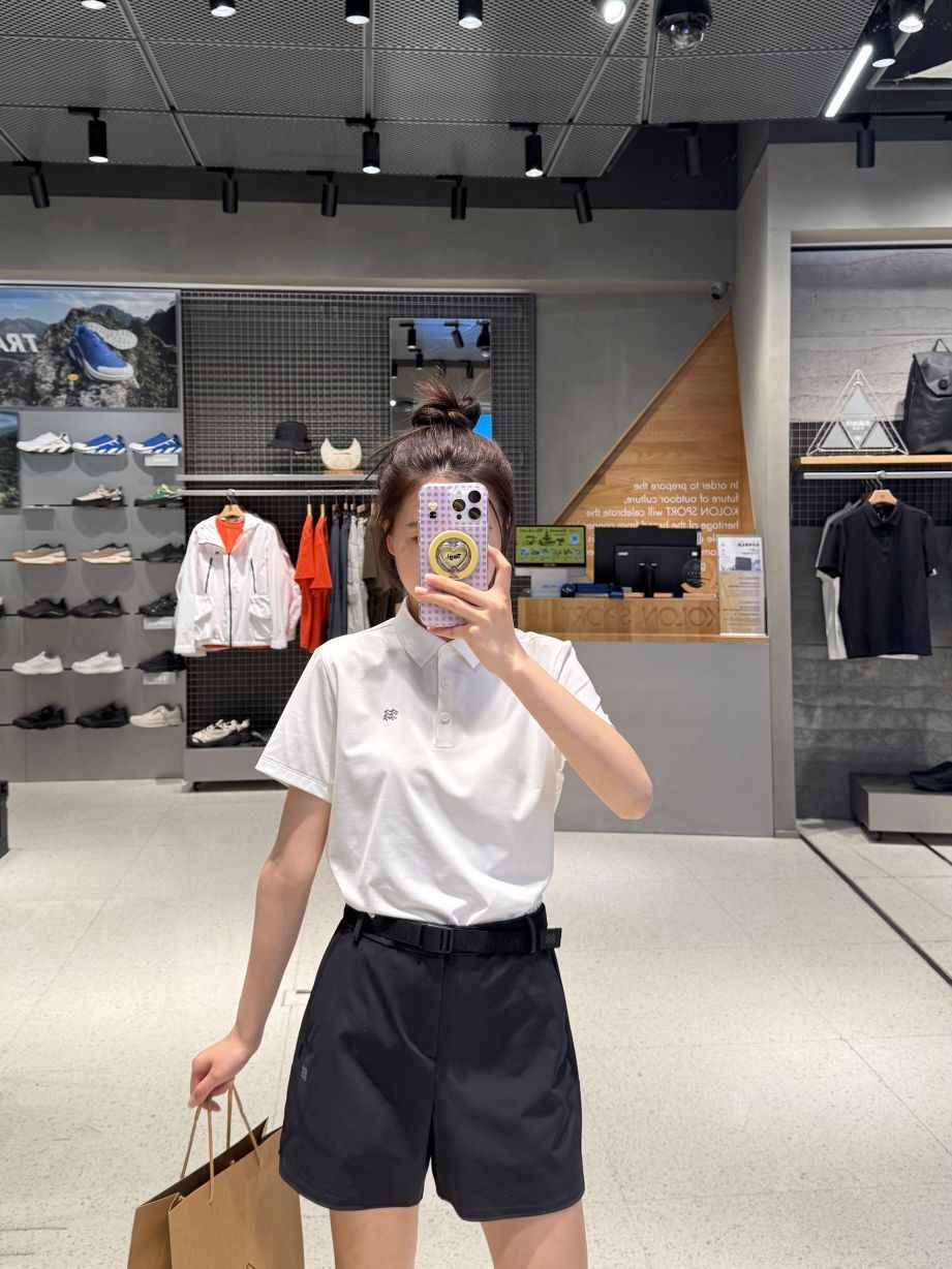 可隆polo短袖黑白两色,可休闲可商务,裤子搭配有腰带,两侧是松紧弹力,方便穿脱,短裤是直筒版型,宽松,包容性很好不挑身材!