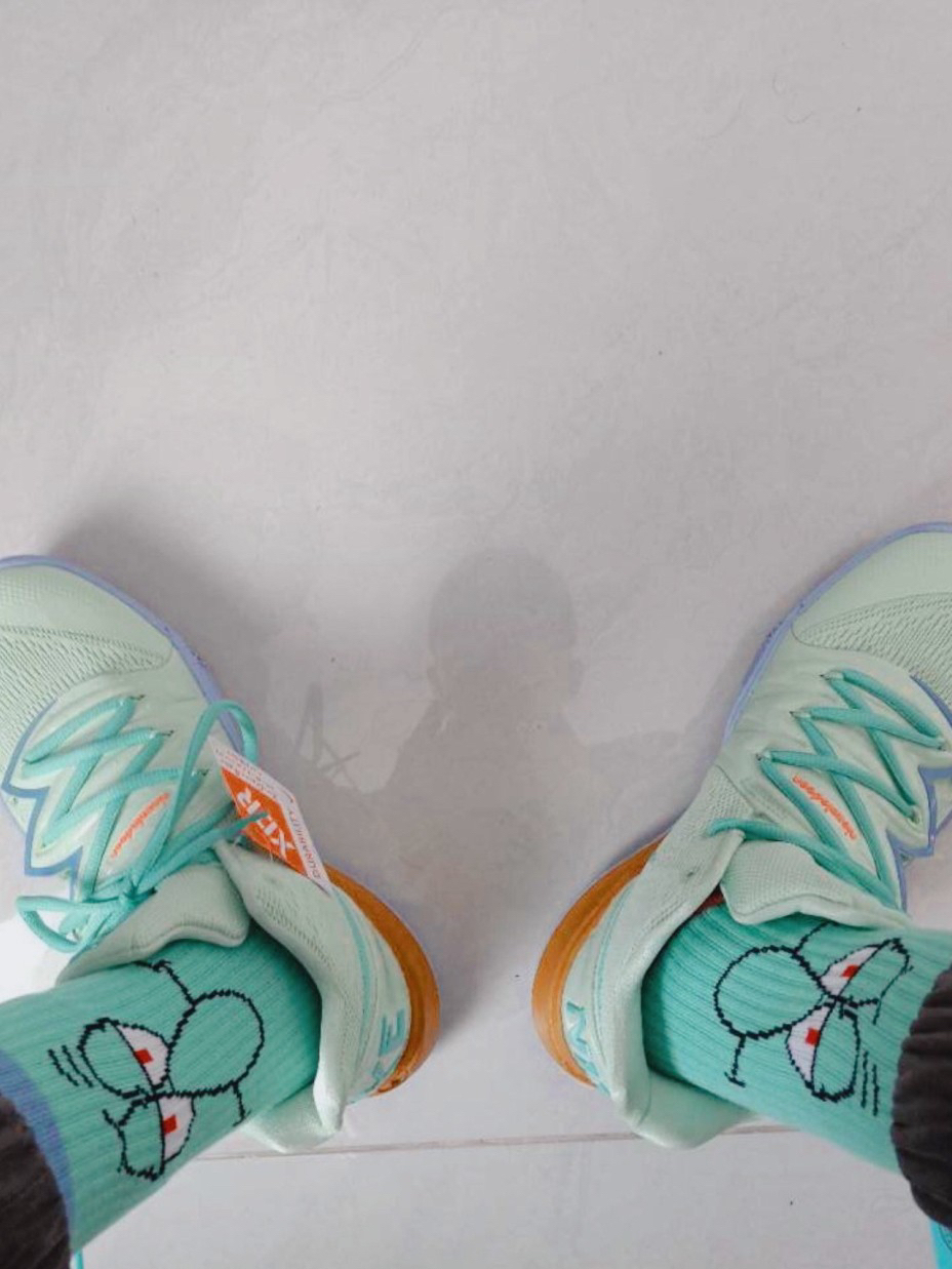 当《海绵宝宝》遇上欧文战靴,这双Kyrie 5「章鱼哥」直接打破次元壁!松石绿主调+萌趣细节,不仅把童年情怀拉满,实战性能更是能打,实测完直接成为鞋柜新宠! 👟 萌趣细节:会讲故事的鞋身设计 松石绿鞋面完美复刻章鱼哥的经典配色,后跟突起的斑点纹路神还原章鱼哥布满皱纹的头顶,每走一步都像在和童年对话!大底的触手造型纹路、鞋垫上的卡通形象,连鞋带孔都藏着小章鱼彩蛋,细节控直接沦陷!出街时路人频频回...