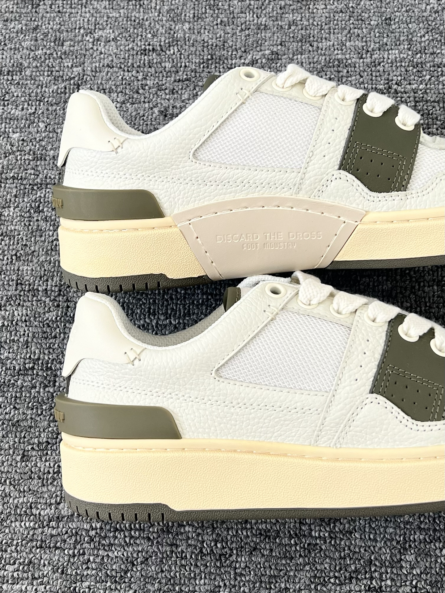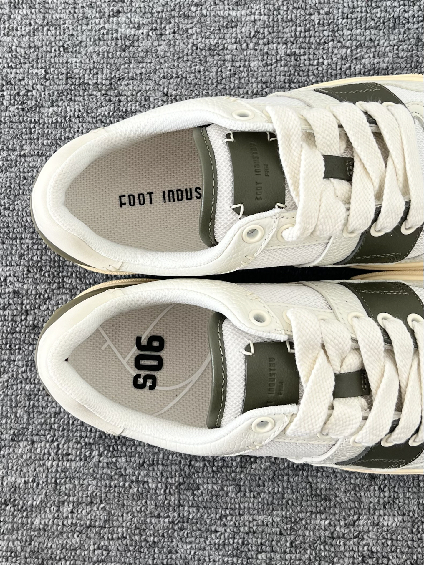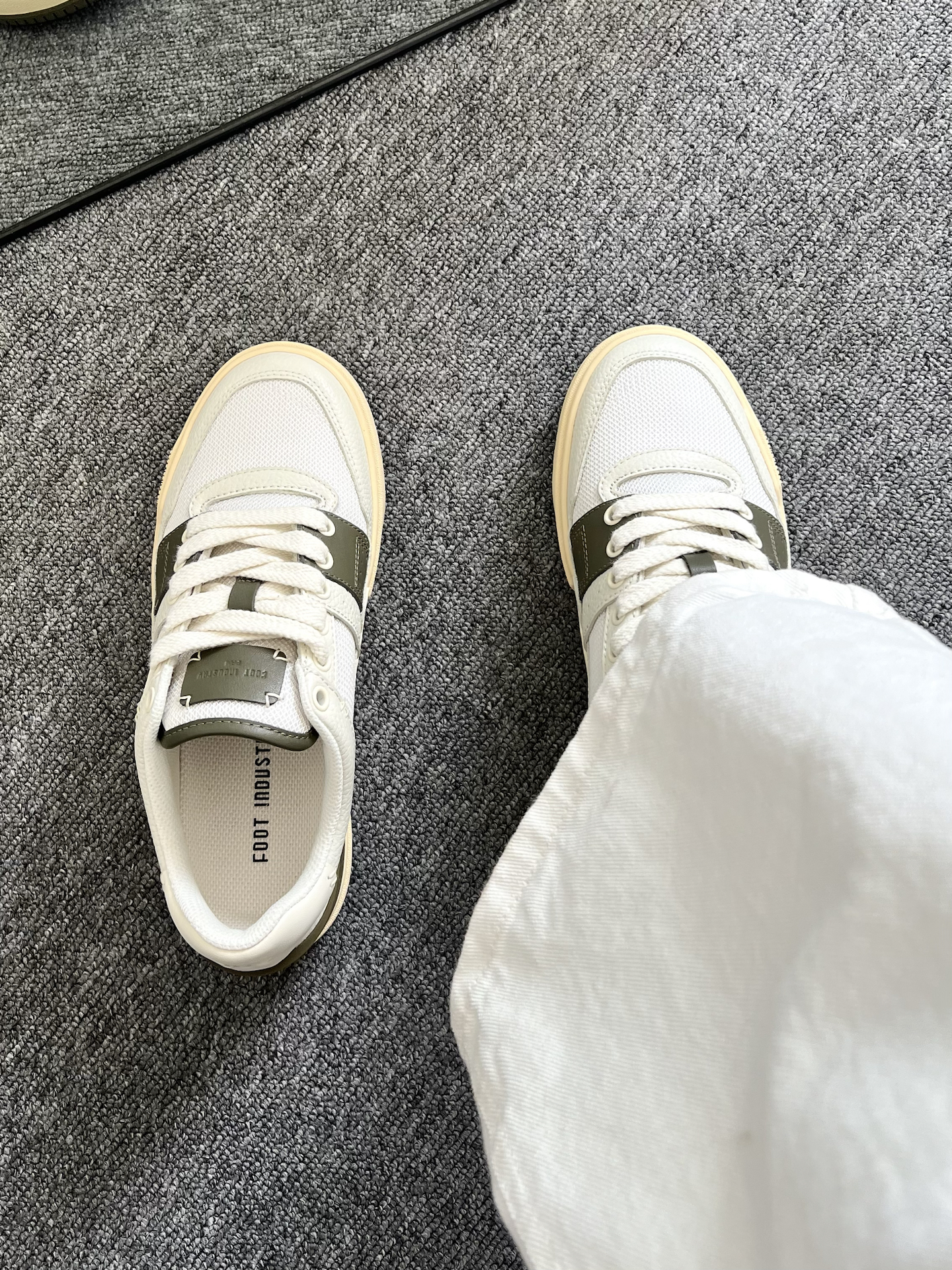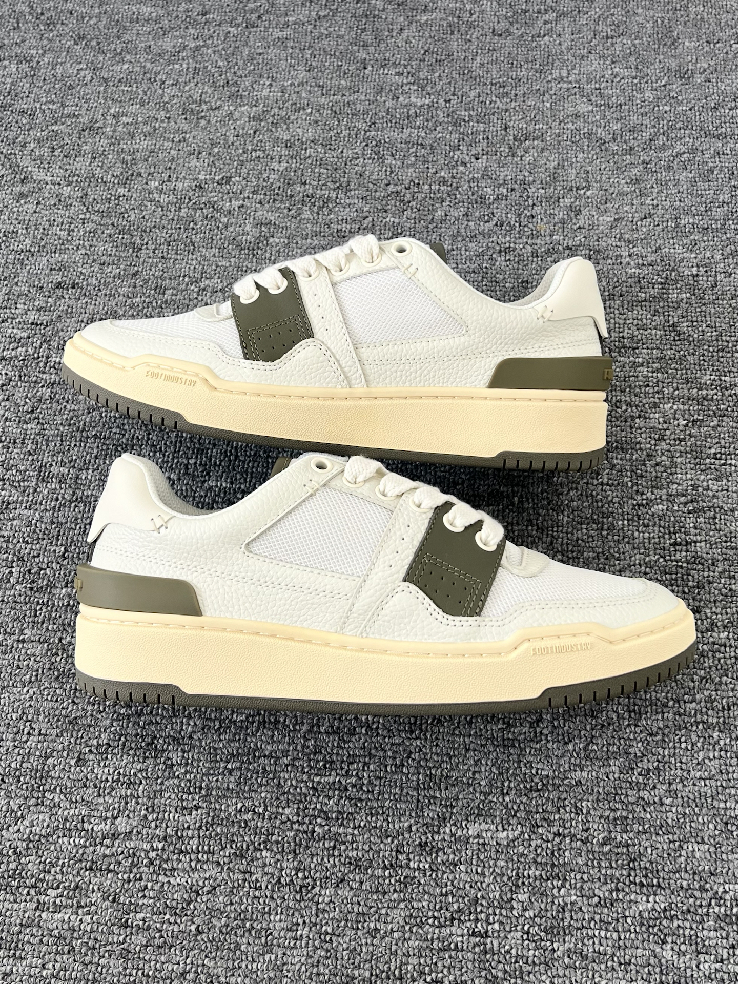 是一眼心动的颜色耶 白色➕橄榄绿搭配的鞋身 看起来有种复古少年感 我觉得日常搭配浅色系裤子就不错 皮质的鞋面好打理 适合现在这个季节 #FOOTINDUSTRY足下工业 #运动系穿搭全攻略 #拿捏运动男友风 #潮酷出街情侣档 #潮鞋捕手计划