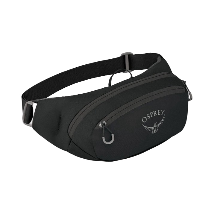 品牌亮点 OSPREY专业户外基因加持,以环保回收材质与人体工学设计打造都市运动利器,男女同款黑色极简造型,情侣出行默契之选。 核心优势 - 环保耐磨:100%回收PET面料(bluesign®认证),DWR防泼水处理,抗撕裂更可持续。 - 舒适贴合:37mm宽弹性腰带+饺子型立体剪裁,贴合腰部无硌感;透气网面背板,久戴不闷汗。 - 轻量强收纳:2L容量(自重仅85g),主袋可装手...